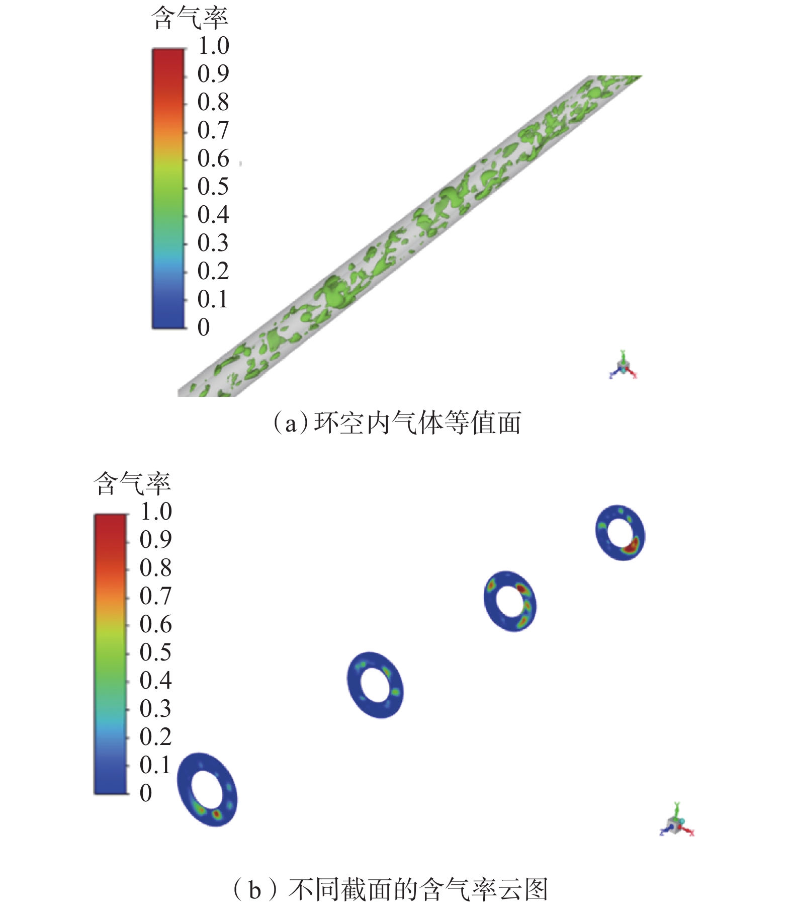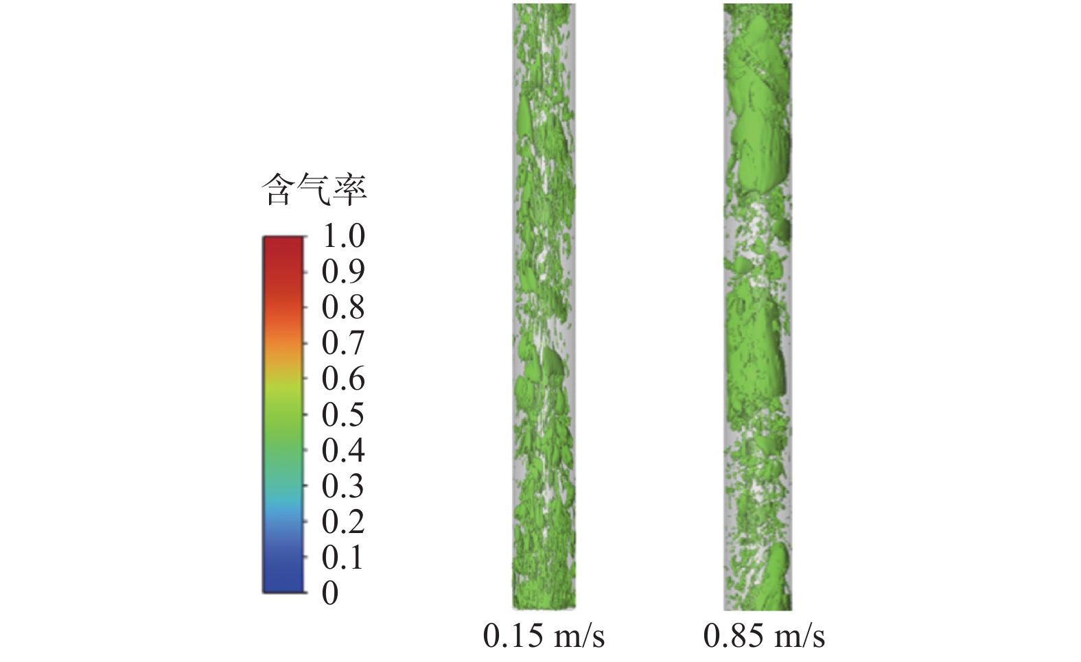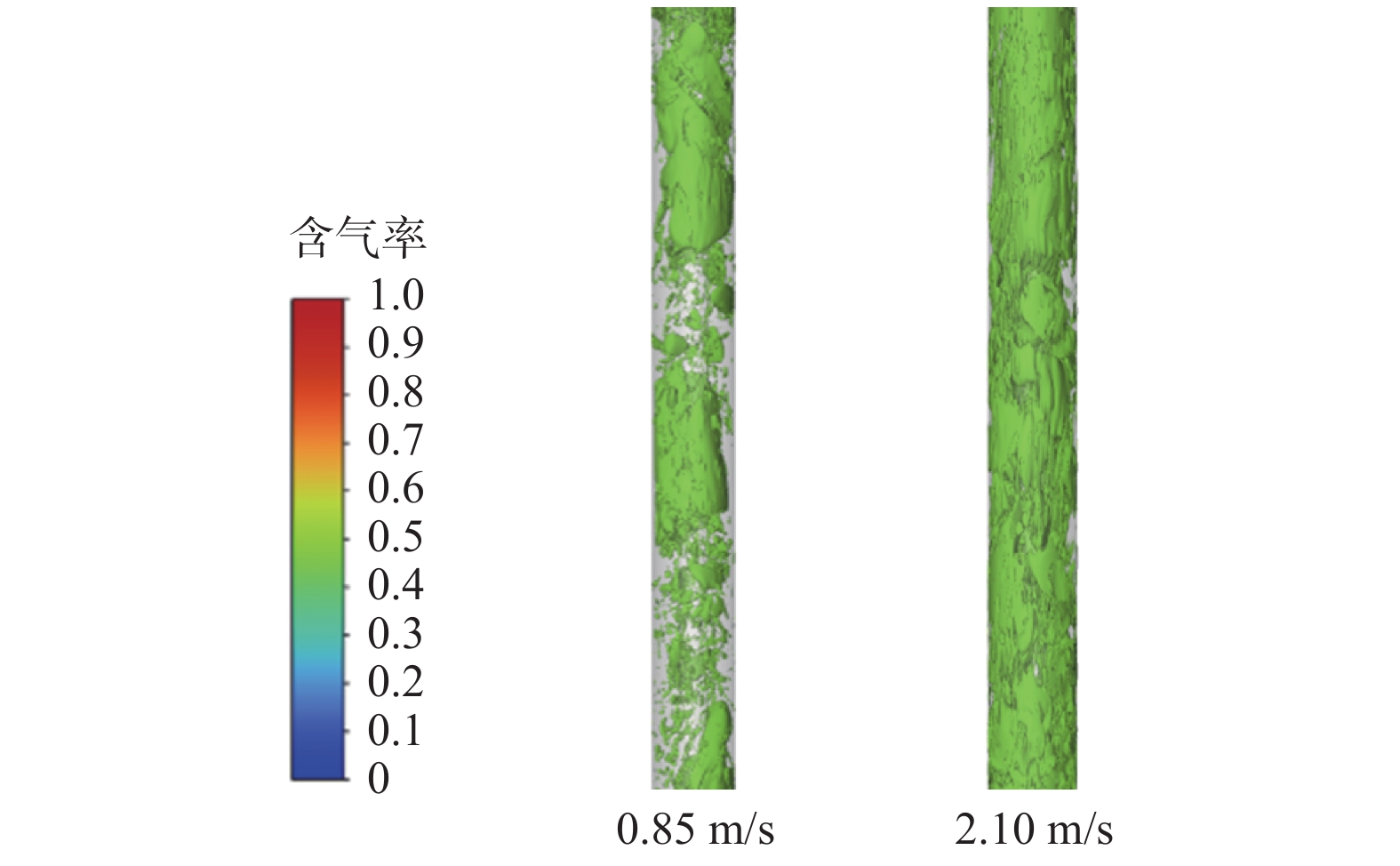In deep and ultra-deep oil and gas wells, abnormal pressure is often encountered while drilling due to their complex casing program and larger borehole sizes, which results in a narrowed safe operating window. When gas intrusion occurs, a gas-liquid two-phase flow forms in the annulus of the wellbore. Conventional well killing methods based on flow pattern transition theories of conventional annulus sizes are prone to exceeding this narrow window, leading to alternating influx and loss and therefore the optimal well killing timing is missed. To address this issue, a numerical simulation method for gas-liquid two-phase flow in large-size annulus was developed using the volume of fluid (VOF) model and was verified with literature data for accuracy. In the simulation of gas-liquid two-phase flow in an annulus with a hydraulic equivalent diameter of 196.8 mm, four flow patterns including bubble flow, cap bubble flow, slug flow, and churn flow were identified and analyzed. A gas-liquid flow pattern map was created, and criteria for flow pattern transitions were established, revealing the influence of annulus size on flow pattern transitions. The results indicate that compared with conventional annulus size, the range of bubble flow expands in larger annuli, with a transitional flow pattern, namely cap bubble flow occurring between bubble and slug flows. The boundaries for flow pattern transitions shift to the right to some certain degree. In conventional annulus size, bubble coalescence and the formation of Taylor bubbles are common, making well killing operations more challenging. Consequently, well control parameters designed for large annuli tend to be bigger. On the contrary, the well control parameters designed based on the new criteria meet the requirements of well killing better in narrow windows and large borehole sizes, thereby improving the efficiency and safety of well killing operations.
