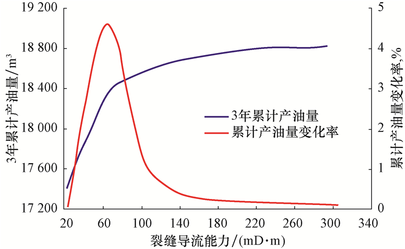 | 图3 不同裂缝裂缝导流能力下的累计产油量 Fig.3 Cumulative oil production under different fracture conductivities |