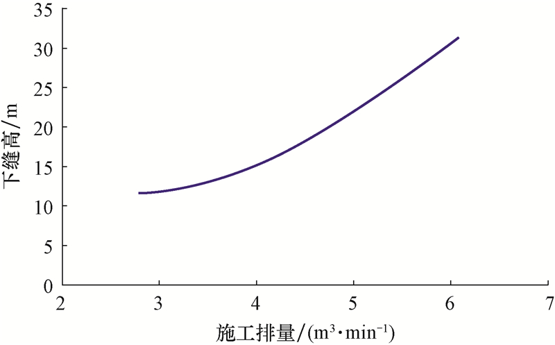 | 图4 缝高与施工排量的关系 Fig.4 Relationship between flow rate of fracturing fluid and fracture height |