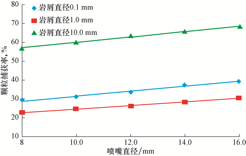 | 图 5 喷嘴直径对岩屑颗粒捕获率的影响 Fig. 5 Effect of nozzle size on Ra |