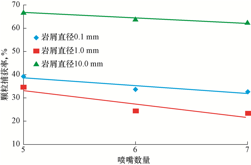 | 图 6 喷嘴数量对岩屑颗粒捕获率的影响 Fig. 6 Effect of nozzles on Ra |