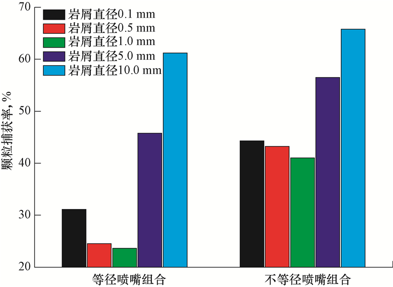 | 图 7 喷嘴组合方式对岩屑颗粒捕获率的影响 Fig. 7 Effect of nozzle assembly on Ra |
