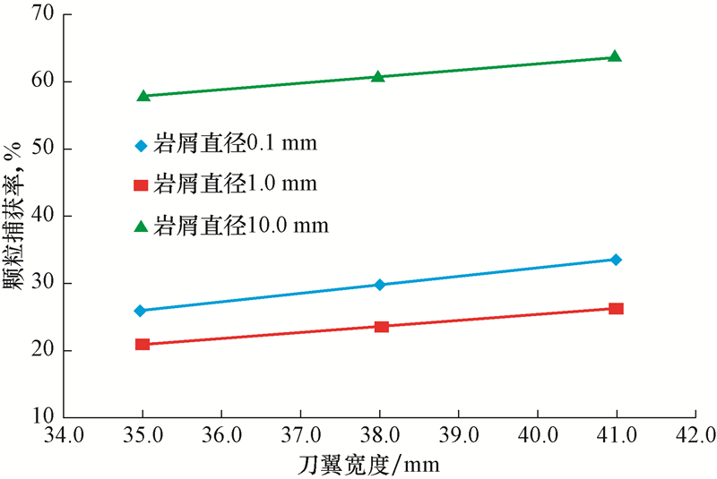 | 图 8 刀翼宽度对岩屑颗粒捕获率的影响 Fig. 8 Effect of blade width on Ra |