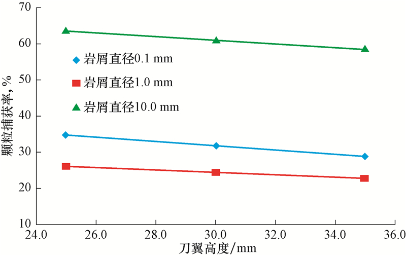 | 图 9 刀翼高度对岩屑颗粒捕获率的影响 Fig. 9 Effect of blade height on Ra |
