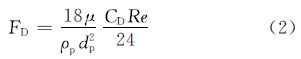 式中:vp为颗粒速度,m/s;FD为流体拖曳力,N;v为流体相速度,m/s;ρp为颗粒密度,kg/m3;ρ为钻井液密度,kg/m3;gx为重力加速度,m/s2;Fx为其他单位质量作用力,m/s2;μ为动力黏度,Pa·s;dp为颗粒直径,m;CD为拖曳力系数;Re为雷诺数。