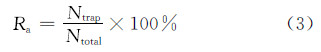 为量化水力因素对钻头防泥包性能的影响规律,以岩屑颗粒捕获率作为评价参数,其定义为:
