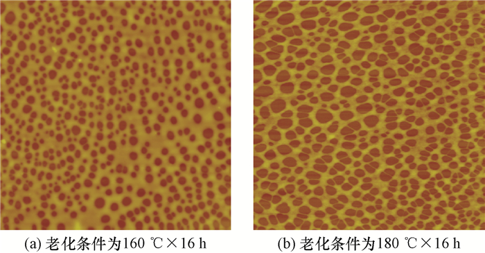 | 图 8 不同温度下老化后增黏剂ZNJ-1的AFM照片 Fig.8 AFM images of ZNJ-1 after aging under different temperatures |