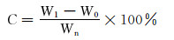 式中:C为淀粉单体转化率,%;W0为可溶性淀粉质量,g;Wn为反应单体总质量,g;W1为接枝粗产物质量,g;G为接枝率,%;W2为纯接枝产物质量,g。