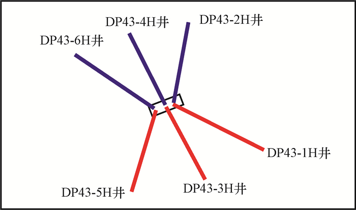 | 图 9 DP43水平井组井位示意 Fig.9 Schematic map for deployment of DP43 well group |