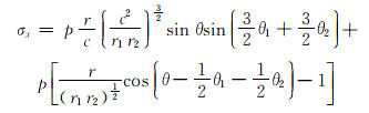 在人工裂缝周围,最小水平主应力方向产生的诱导应力最大,而最大水平主应力方向产生的诱导应力最小,裂缝周围任意一点处的诱导应力可表示为: