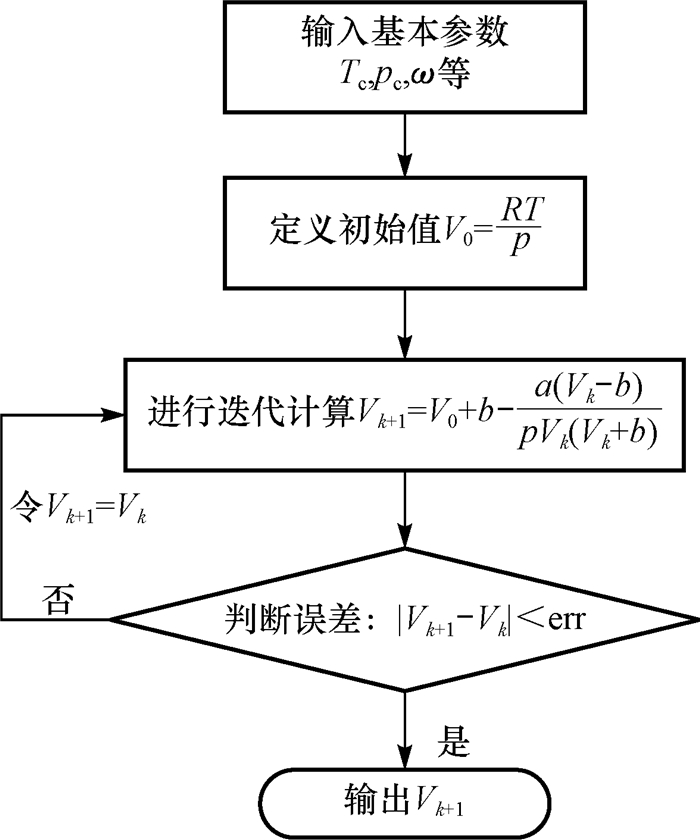 | 图 1 基于SRK状态方程的页岩气比容计算程序框图 Fig.1 The calculating program diagram for shale gas specific volume by SRK equation of state |