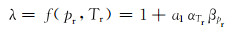 式中:a1为拟合系数;αTr为温度对比容影响的修正项,通过对比温度实现该参数的计算;βpr为压力对比容影响的修正项,通过对比压力实现该参数的计算。
