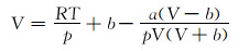 式中:R为通用气体常数,8.314 J/(mol·K);p为系统压力,Pa;T为温度,K;V为比容,m3/mol;a和b为状态方程系数。