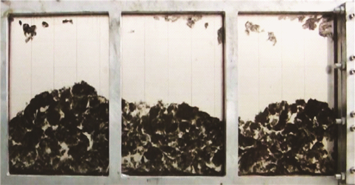 1.1 通道压裂砂堤分布规律笔者采用可视裂缝模拟系统(见图 1)进行通道压裂砂堤分布试验,压裂液为黏度100 mPa·s的胍胶压裂液,支撑剂为粒径0.425~0.850 mm的陶粒,纤维的单丝直径15~20 μm、长度12 mm、密度1.05~1.10 g/cm3。