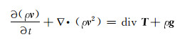 式中:ρ为流体密度,kg/m3;v为流体的流动速度,cm/s;T为流体应力张量,Pa;g为重力加速度,m/s2。
