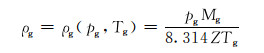 式中:ρg为气体密度,kg/m3;Mg为气体相对分子质量;Tg为气体温度,K;pg为气体压力,Pa;Z为气体压缩因子。