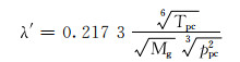 式中:μ′g为地层气体在特定压力下的黏度,mPa·s;μg1为标准状态下气体的黏度,mPa·s;λ′为经验系数;Tpc为天然气的视临界温度,K;ppc为天然气的视临界压力,MPa。