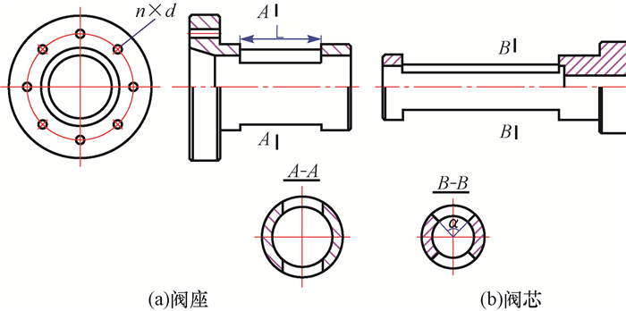 | 图 3 阀座与阀芯的基本结构 Fig.3 Schematic diagram of the valve seat and core |