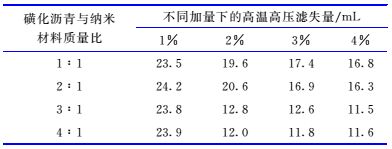 | 图 6 磺化沥青与纳米材料在不同复配比例下的滤失量对比曲线 Fig.6 Fluid loss under different proportions of sulfonated asphalt and nano-material |