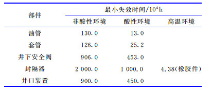 一般情况下,Rt低于0.6时,认为完井管柱密封失效。另外,根据文献和完井失效统计数据[14],确定了目前国际上较为认可的最小失效时间(见表 1)。
