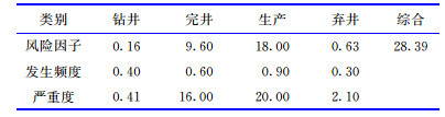 在评估气井井筒关键结构(点)完整性风险的基础上,对其井筒综合完整性进行评估。在识别气井在钻井、完井、生产和弃井4种工况下的井筒完整性风险的基础上,分别绘制完整性失效事故树,确定完整性失效发生频度P。事故树基本事件的概率通过统计数据和井筒关键结构(点)完整性风险评估结果获得。将完整性失效发生频度P与完整性失效严重度S结合,最终确定气井井筒综合完整性风险因子Fw,计算结果见表 2。