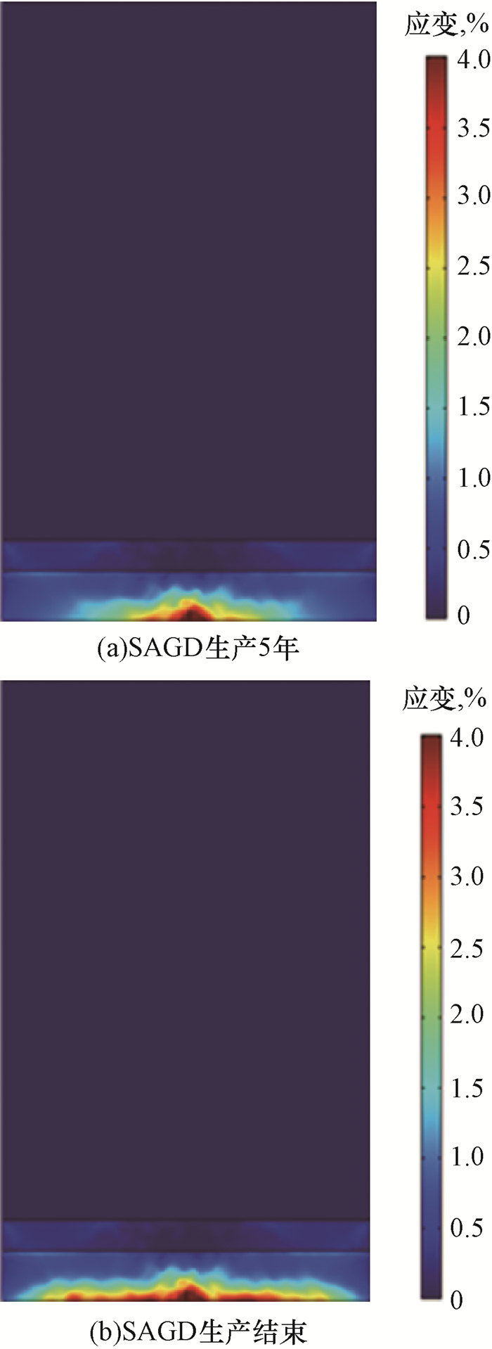 图 8表明,在SAGD开采期间地层塑性应变主要发生在油砂储层,盖层没有出现塑性应变。