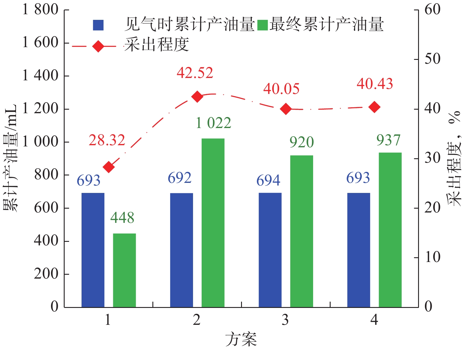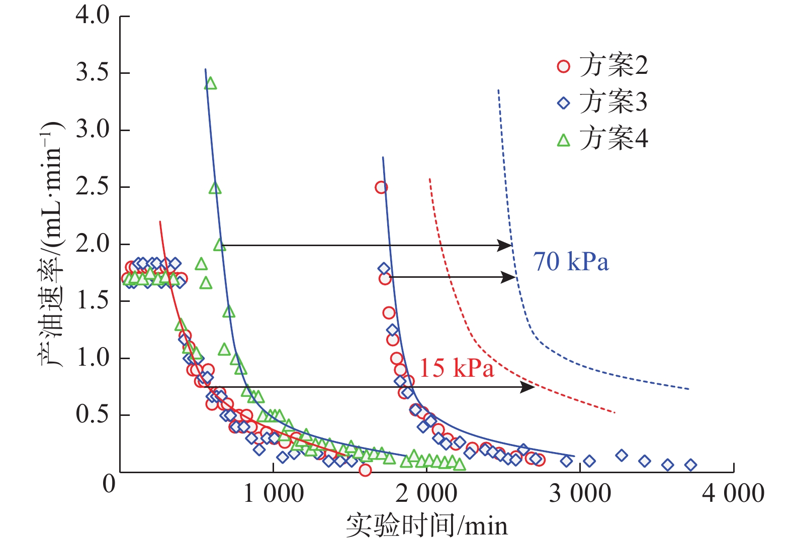 To better understand the influence of draw-down pressure control strategy on the development result of gas-cap/edge water narrow oil rim, and to improve the recovery percentage of such reservoirs, a large-scale three-dimensional physical model was designed by taking an offshore gas-cap/edge water narrow oil rim as the prototype on the basis of similarity criteria. Production experiments on the different adjustment timing and adjustment modes of horizontal well draw-down pressure were conducted, and the influence of those adjustments on the development results of gas- cap/edge water narrow oil rim was analyzed. The results showed that the draw-down pressure increased after gas channeling in the horizontal wells, and the recovery percentage increased from 28.32% to about 40.00%. When gas channeling lasts for a period of time, the recovery percentage from draw-down pressure increase was better than that when gas channeling occurs instantly, and the recovery percentage can increase by 2.09%; In addition, the development result from draw-down pressure increase in single step mode is better than that in multi-step mode, and the recovery percent can increase by 2.47%. The research results showed that draw-down pressure increase in single step after gas channeling lasts for a period of time is the best strategy to improve the recovery percentage of this type of reservoir. This pressure draw-down adjustment strategy has been applied in an offshore gas-cap/edge water narrow oil rim, and oil production increase is remarkable.