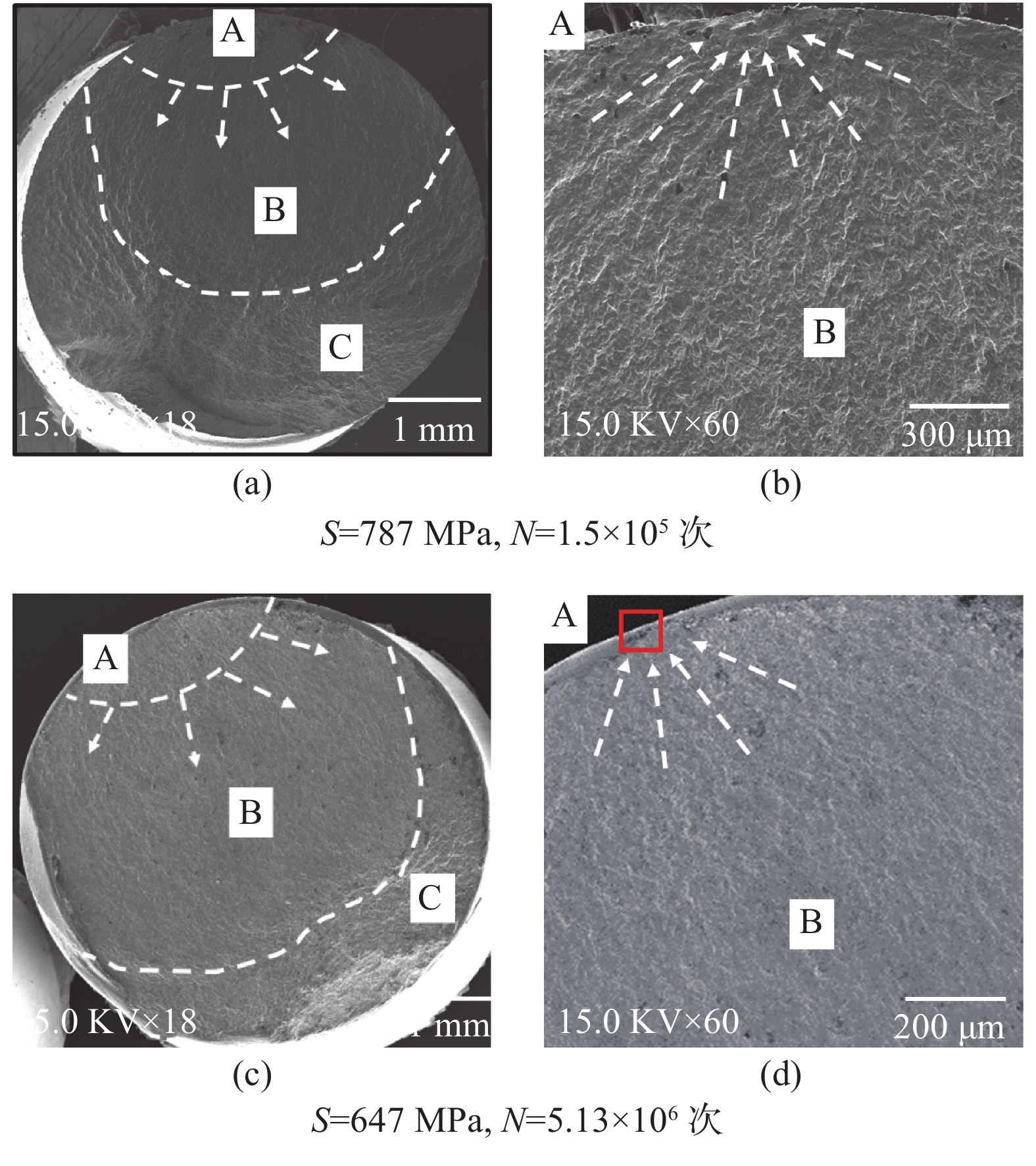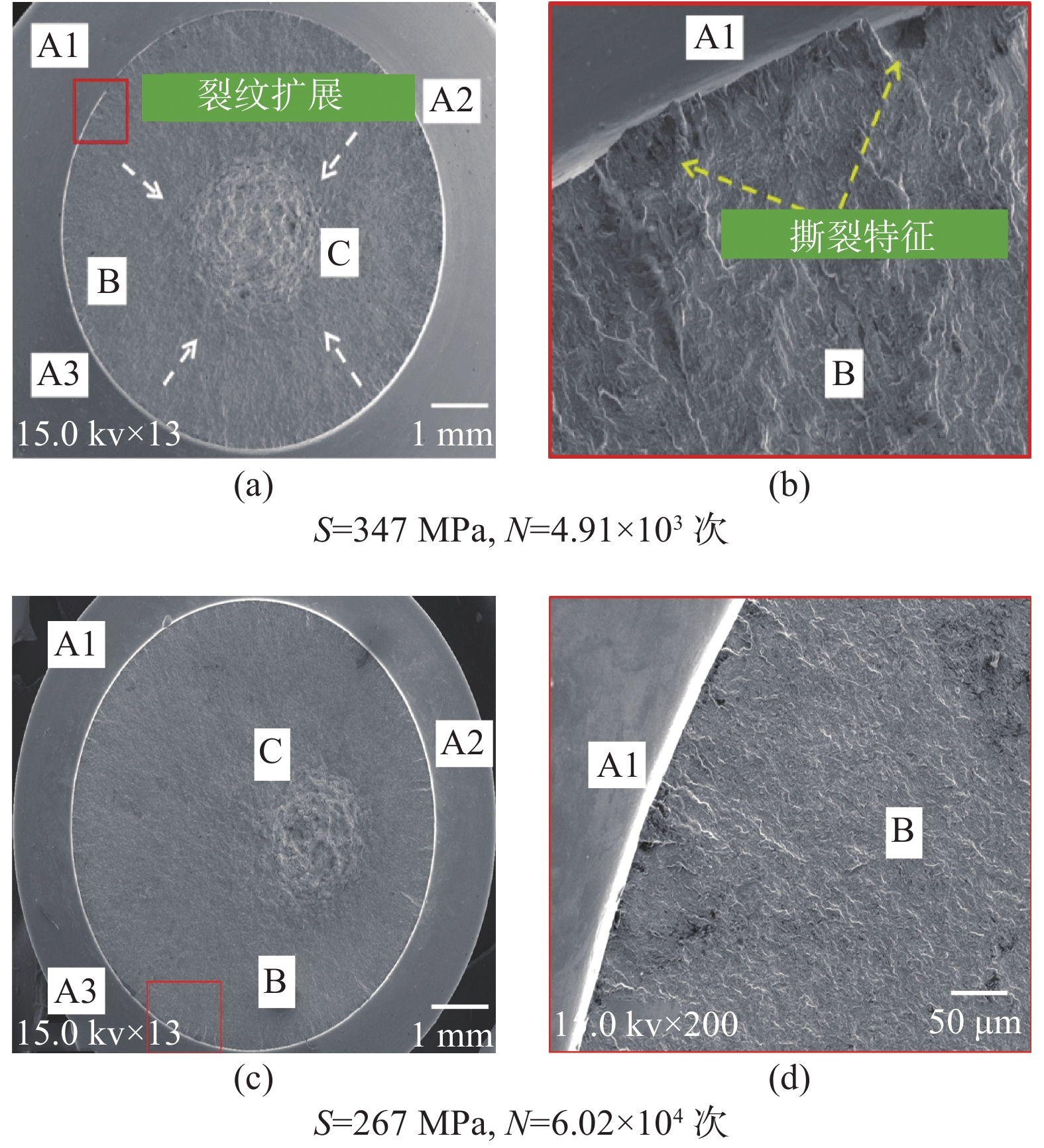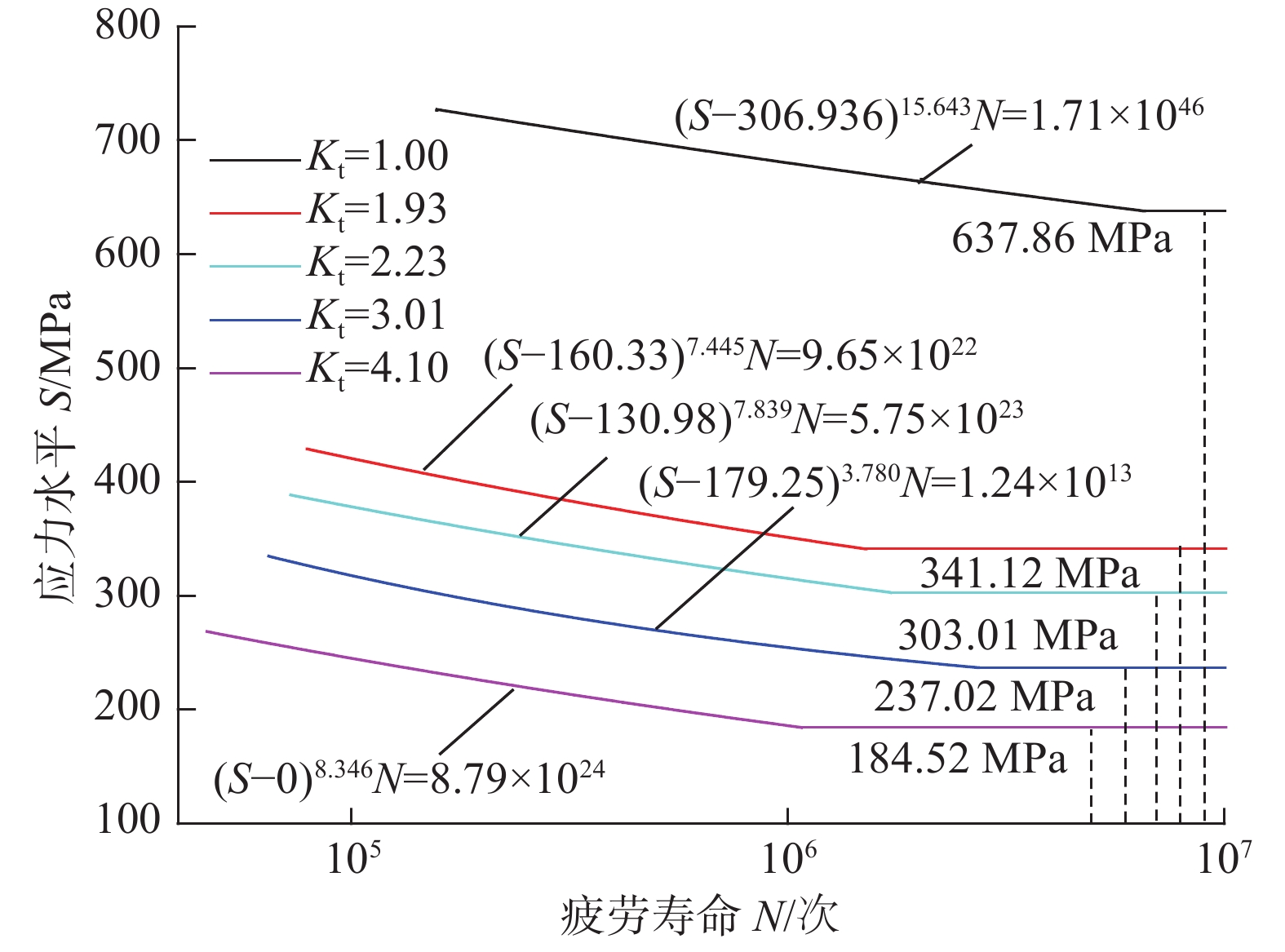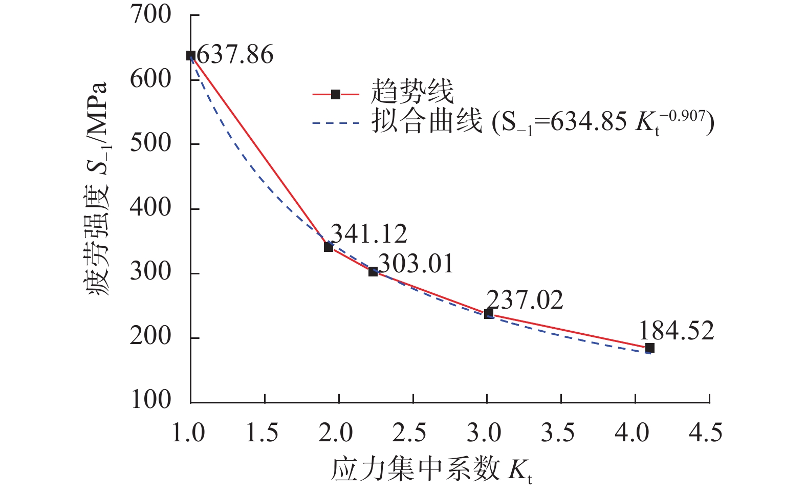 Drill pipe joint fatigue is the main form of drill pipe failure. In order to improve the safety fatigue life of drill pipe, the notch fatigue behavior of S135 drill pipe joint has been studied. The fatigue specimens were designed according to the force characteristics of drill pipe joint, and the influence of stress concentration on the fatigue performance of S135 drill pipe was studied by PQ-6 rotary bending fatigue tester and scanning electron microscope. The results showed that the fatigue of S135 drill pipe exhibited certain sensitivity to the V-notch. The smaller the notch root radius, the larger the stress concentration factor, and the more serious impact on the fatigue performance. The stress concentration factor and the fatigue strength are in accordance with the power function relationship. The process is as follows: the fatigue crack starts from the root of notch, and many sources of cracks existed (in annular arrangement). When the stress is the same, the tearing phenomenon at the root of notch weakens with the increase of stress concentration factor, the fracture becomes smooth and flat, and the fatigue fringes become fine and dense. The research results showed that the optimal design of the drill pipe thread joint could reduce or alleviate the stress concentration of the root, reduce the fatigue sensitivity of S135 drill pipe to the notch, and improve the safety by better mapping the fatigue life of S135 drill pipe.