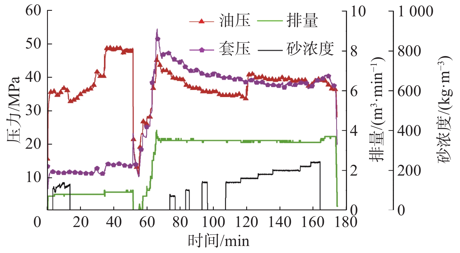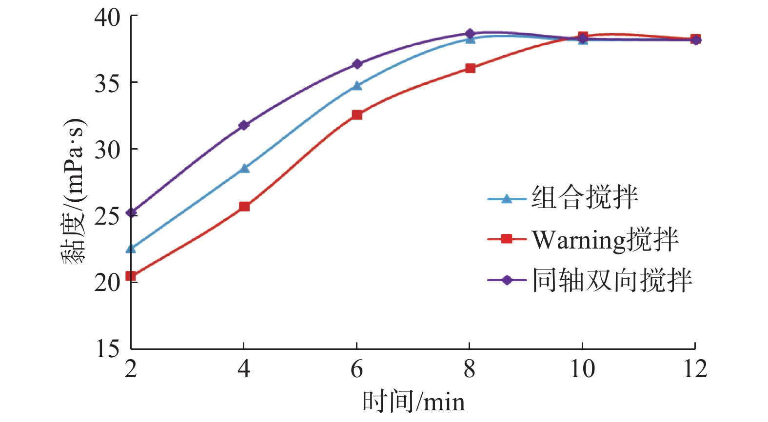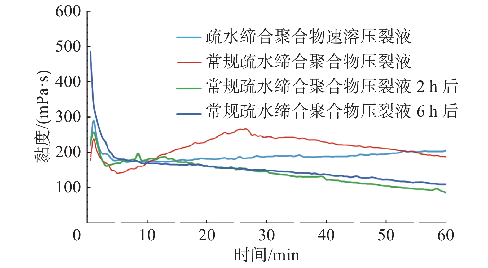 Due to hydrophobic associating polymers fracturing fluid have problems, such as poor dispersing performance, a long swelling time and which was unsuitable for continuous mixing at the wellsite. Thus, an instantly dissolving fracturing fluid technology using hydrophobic associating polymer has been developed by comprehensively combining mechanical and chemical methods. The solubility parameter for fluid preparing was reduced through the development of a cosolvent, and the swelling time of polymer was accelerated by utilizing the negative entropy factor. The coaxial bi-directional stirring device was designed to improve the turbulent flow of solid-liquid mixture and to shorten the curing time of the polymer. Experiments showed that the solubility parameter and the swelling micelle diameter were the key factors affecting the swelling and curing of polymer. The swelling ratio of hydrophobic associating polymer reached 92% in 4 min by adding 4% cosolvent. We found that the stirring rate has little effect on the curing time of such polymer, and further, the stirring method is the main factor affecting the curing speed of polymer. The swelling ratio of the coaxial bi-directional stirring method reached 86% in 6 min, and the developed instant dissolving hydrophobic associating polymer fracturing fluid system have the shear resistance of greater than 180 mPa·s at 90 °C, which satisfies the field requirements. The new fracturing fluid technology could achieve the continuous mixing of polymer fracturing fluid, and reduce the influence of residual fluids on the environment, which provided technical support for the implementation of large-scale volumetric fracturing in factory mode.