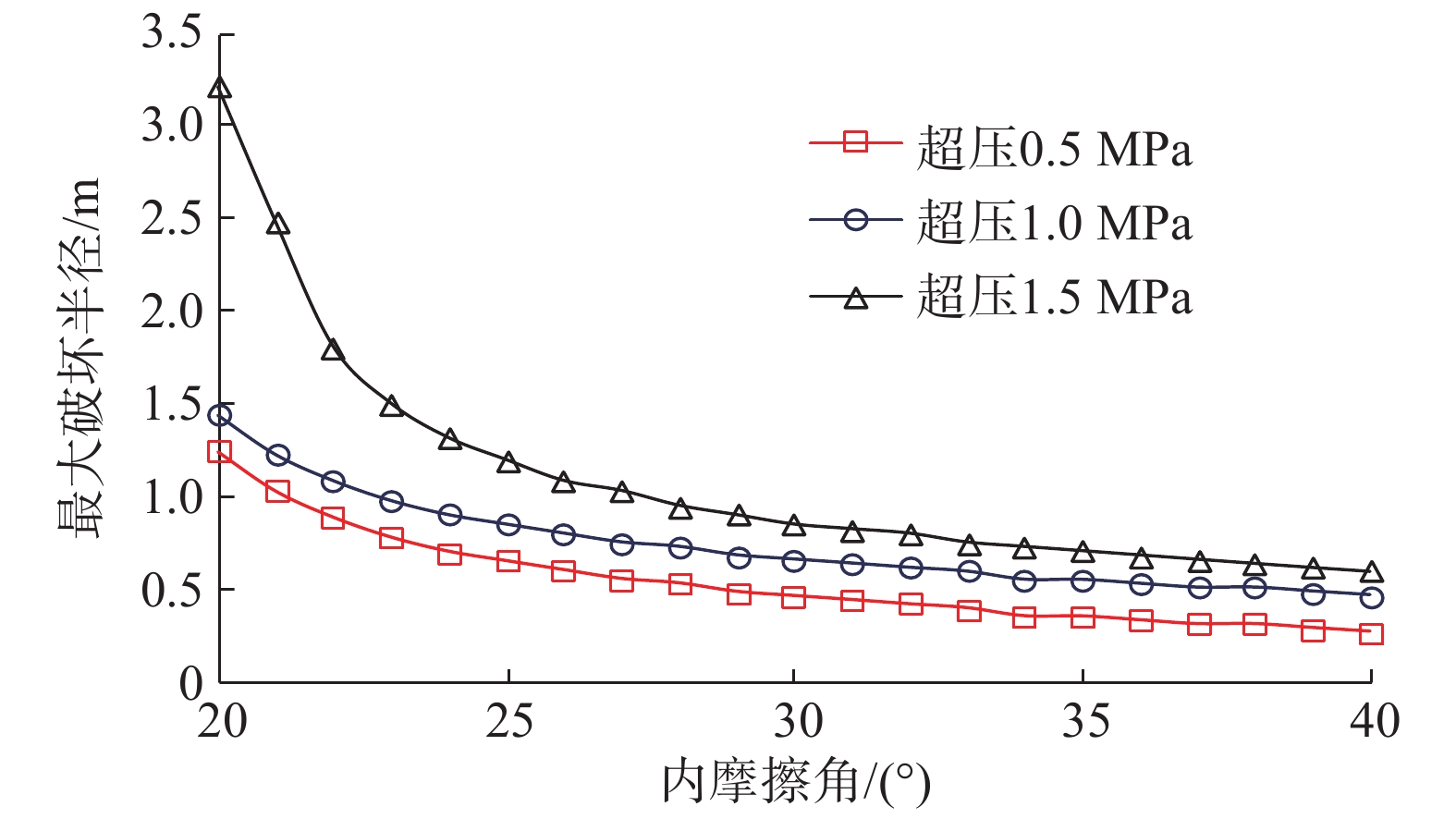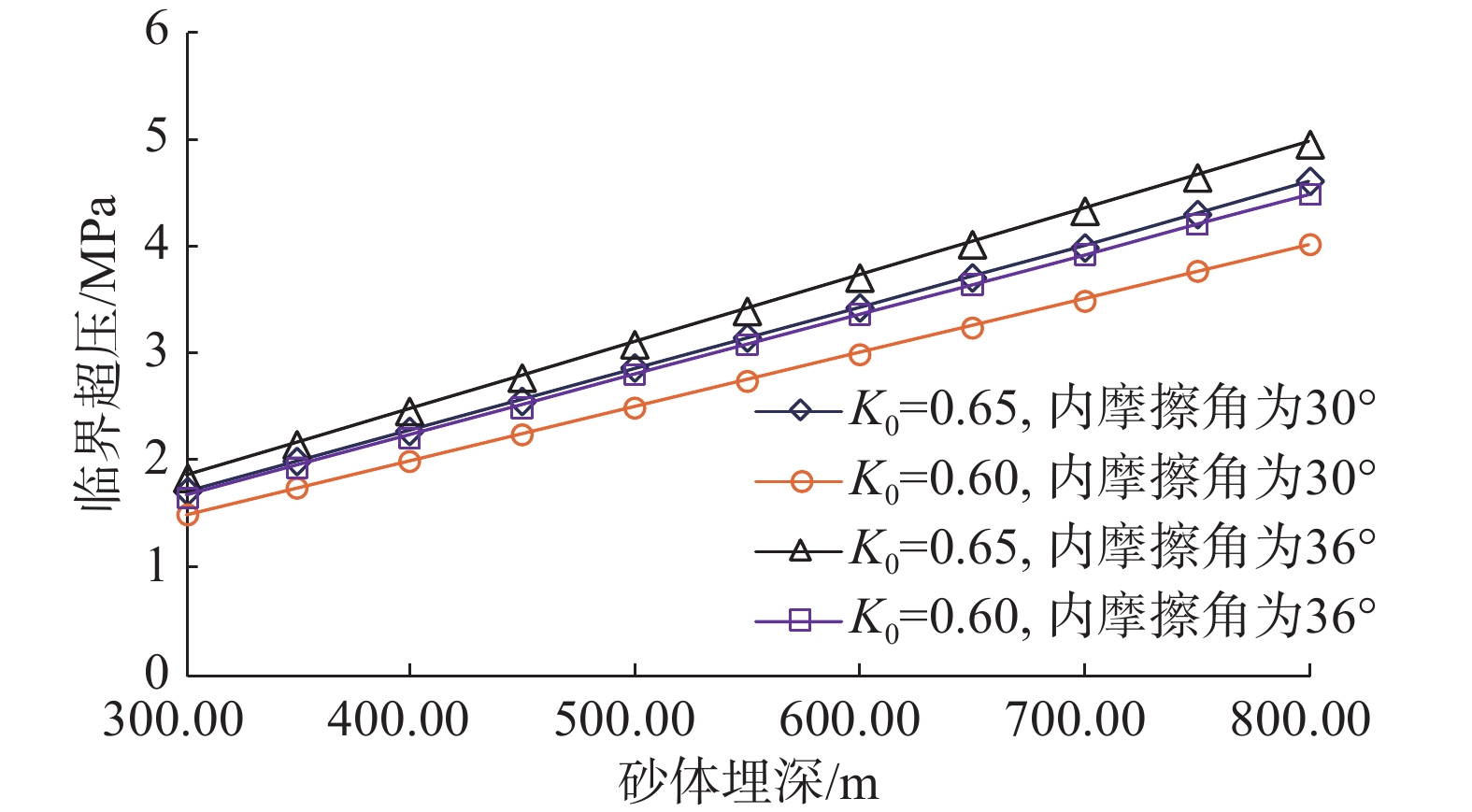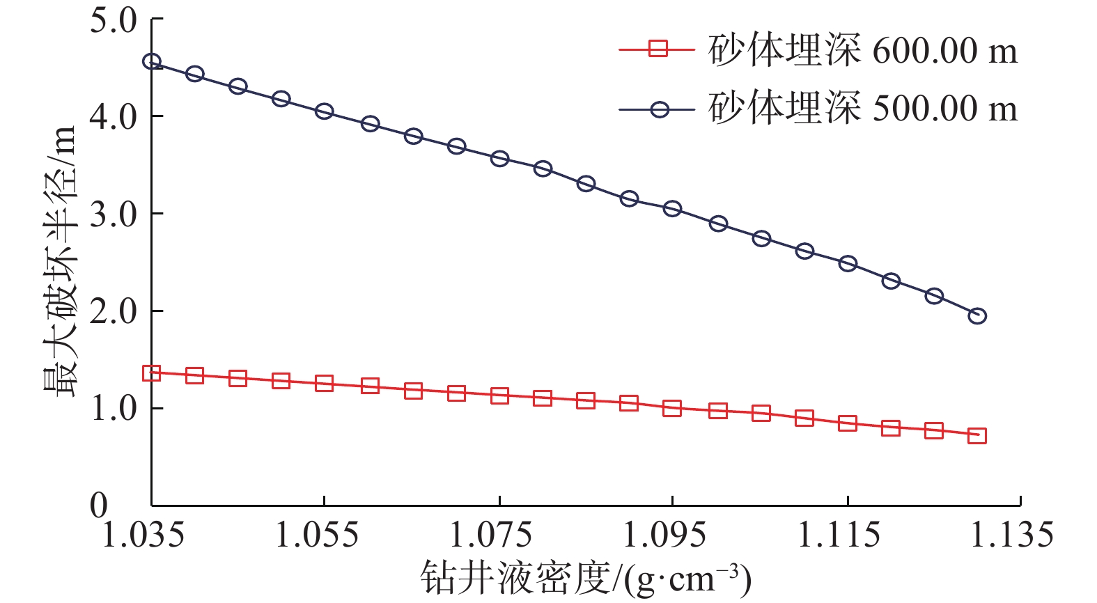 K0 ), and the greater the burial depth of sand body, and the less likely the shallow water flow formation is to be damaged; the larger the internal friction angle in the sand body, the more stable the sand body. Likewise, the smaller the internal friction angle, the more significant impact will be. The maximum damage radius around wellbore linearly decreases with the increase of drilling fluid density. There is a relations between critical overpressure found in the shallow water flow. The larger the burial depth, strength and