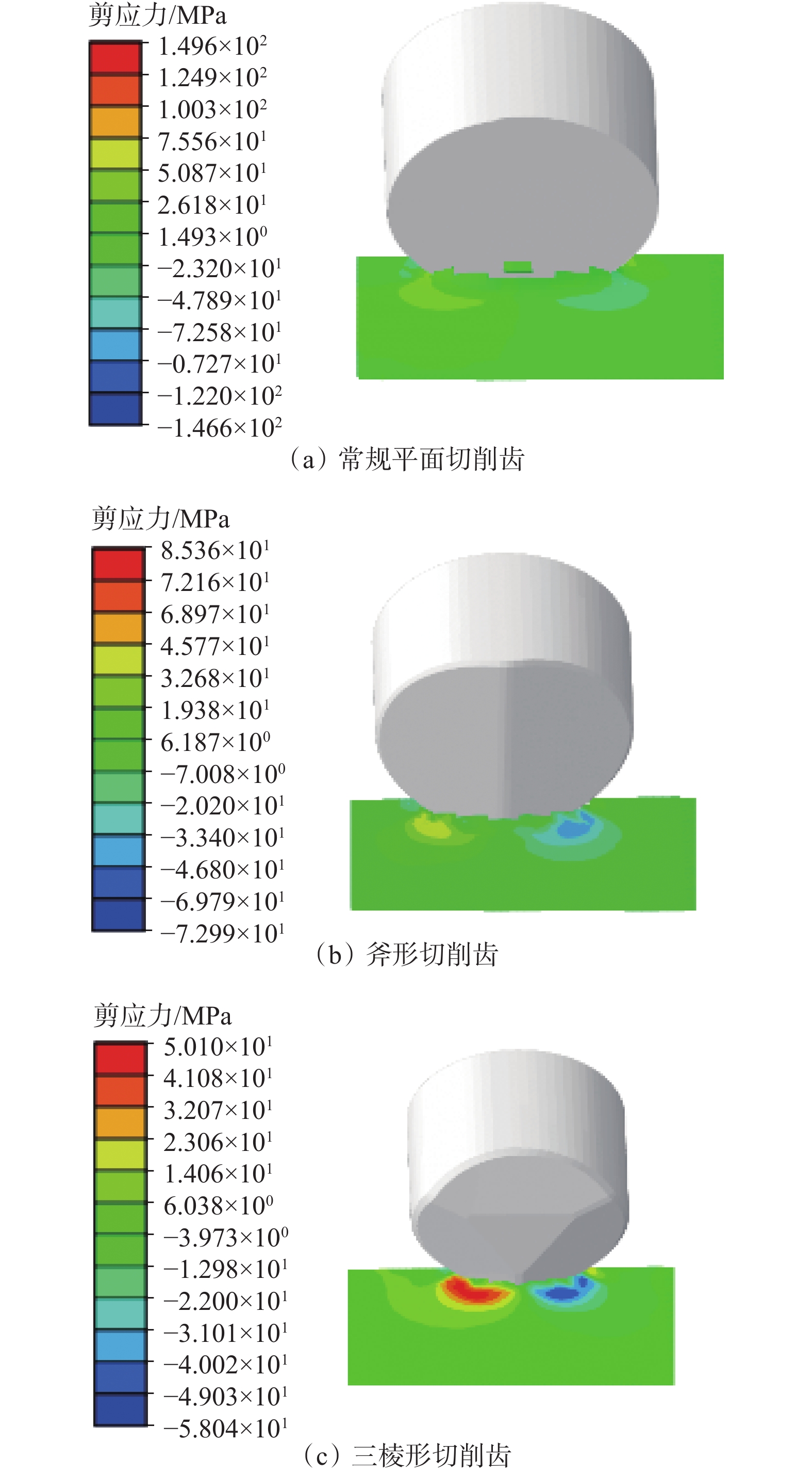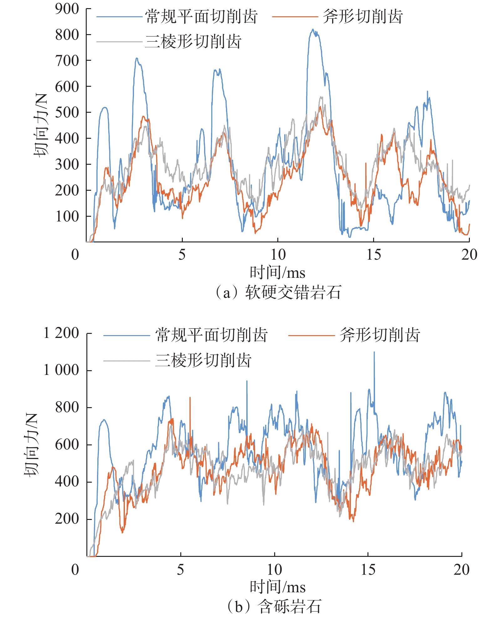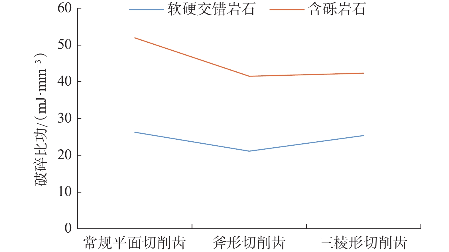 In order to provide references for PDC bit design, the rock breaking performance of triangular prism, axe-shaped and the conventional planar PDC cutting cutter was studied. 3D finite element models of vertical press-in and linear cutting into rocks were established by using finite element software, which simulated the processes of vertical press-in by cutters with the same tooth arrangement angle, and linear cutting of homogeneous/heterogeneous rocks with different cutting depths. It is found that there are significant differences in rock breaking, depending of the shape of the cutters, which can be quite different shapes. Compared with the conventional planar PDC cutters, triangular prism PDC cutters are more easily pressed into the formation to form a crushed pit. When breaking homogeneous sandstone, triangular prism and axe-shaped PDC cutters require less cutting force, and they establish a uniform contact with the rock, resulting in creating a larger pre-crushing area of the rock. For breaking heterogeneous rocks, the tangential force fluctuation of the triangular prism and axe-shaped PDC cutters is small, and it is more easily to break the rocks. According to the simulation results, the test of mixed granite stratum drilling with PDC bit with triangular prism cutters was conducted, and the test results showed that the finite element simulation could provide references for the design of a PDC bit.