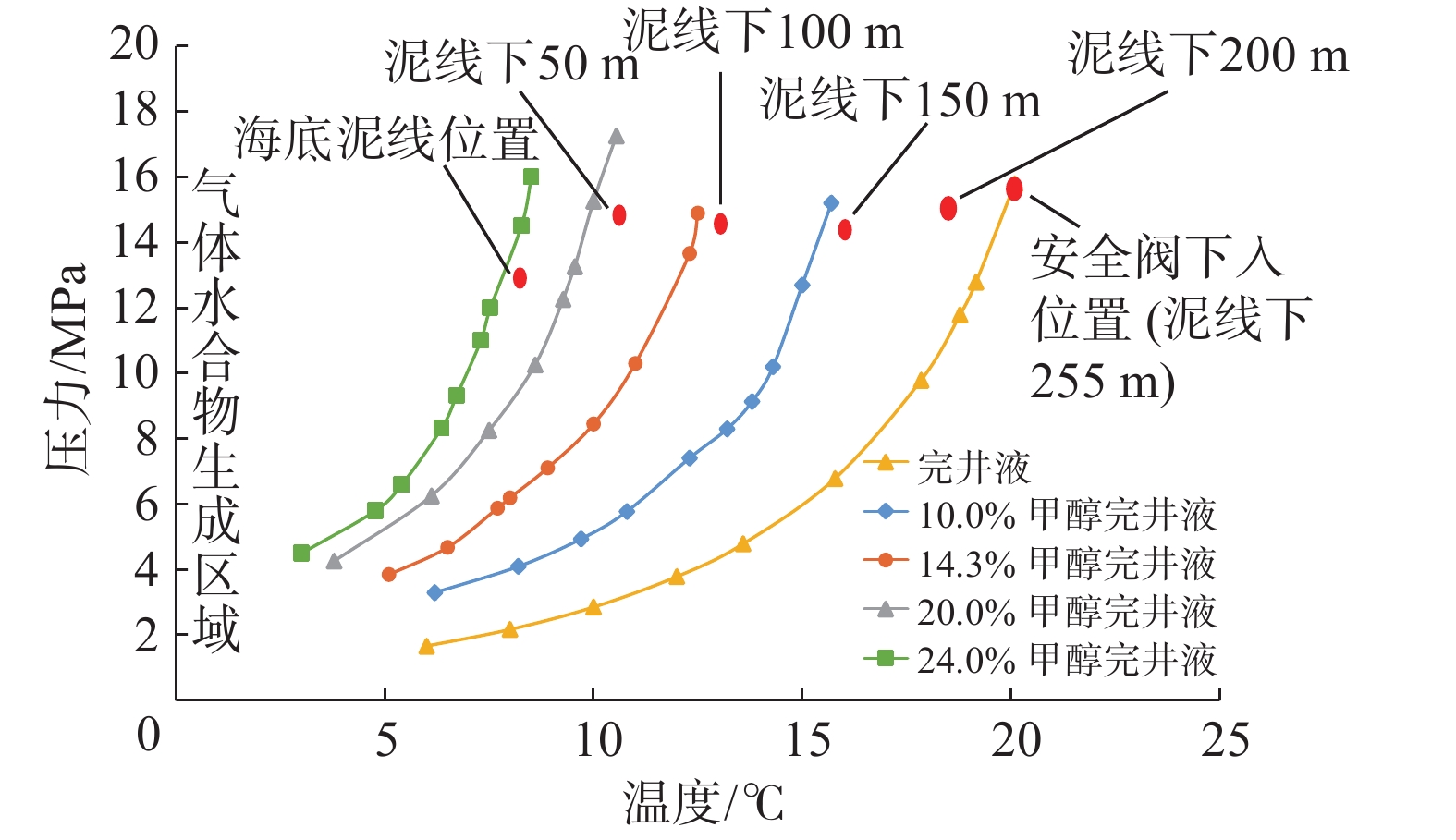 During the testing of deep water oil and gas wells, gas hydrate is prone to block downhole safety valves. To prevent it from happening, a method for determining the reasonable setting depth of safety valve was studied. The gas hydrate phase of equilibrium micro-test device was used to simulate the phase transition process of multi-component gas hydrates under various formation water salinities in the laboratory and to obtain the influencing law of temperature and pressure on the phase equilibrium of gas hydrate. The effects of gas composition, water depth, the geothermal gradient and wellhead pressure on the formation of gas hydrate were analyzed to predict the formation area of gas hydrate, and the method in determining the minimum setting depth of safety valve was obtained from the aspects of safety and cost. Studies suggest that all the factors including gas composition, water depth, geothermal gradient, and wellhead pressure could affect the setting depth of safety valve, and the increased contents of ethane, propane and butane in the produced gas are more likely to form gas hydrates. In addition, the setting depth of the safety valve will be further lower as deeper water depth, smaller geothermal gradient, higher wellhead pressure, and larger gas hydrate formation area. The results of this study could provide a reference for determining the setting depth of test safety valve in deep water oil and gas wells.