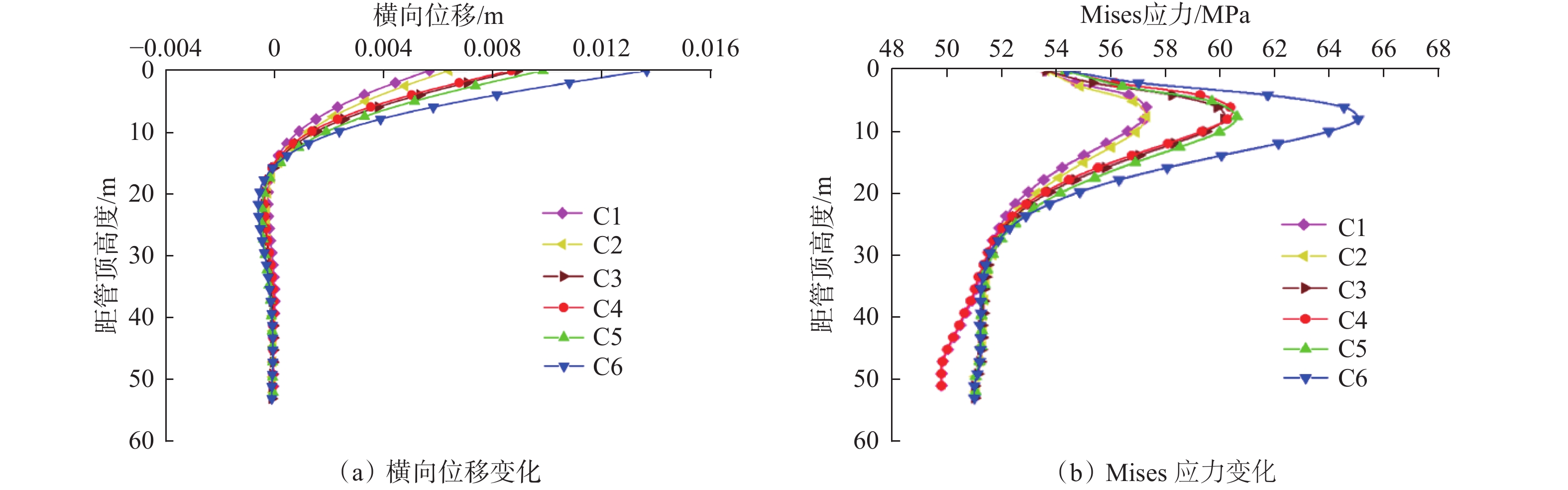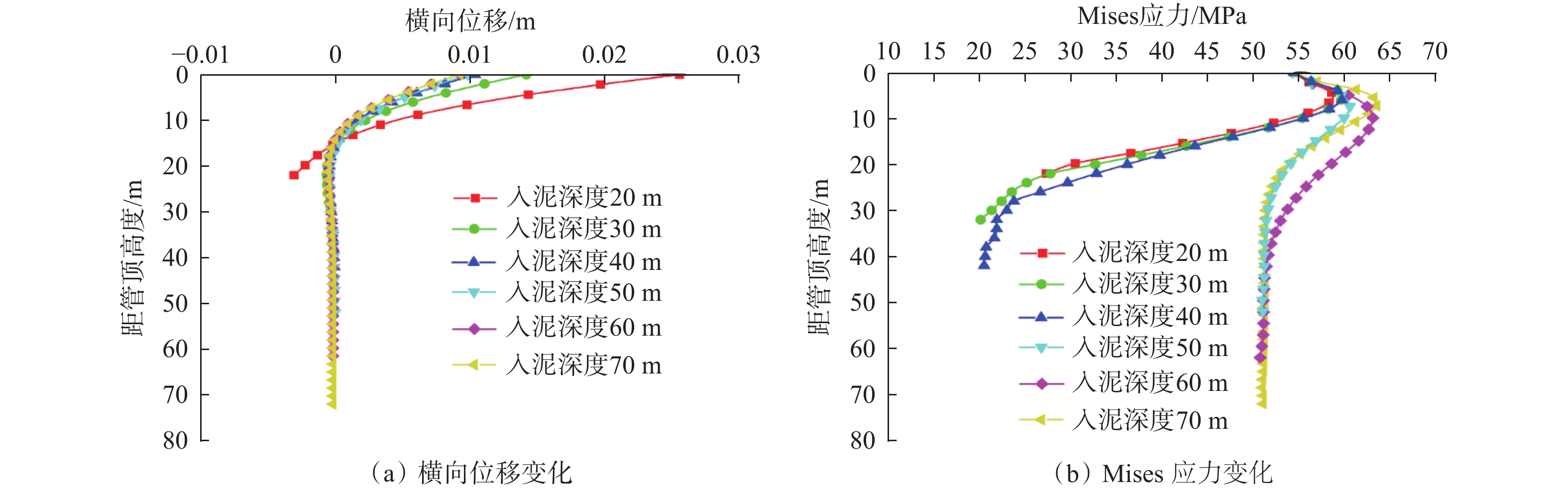 Driving depth, mechanical performance and load characteristics of deep water drilling conductor are the main factors affecting the load-bearing capacity. It is important to keep in mind that capacity directly affects connection stability between the conductor and wellhead. Currently, the size and driving depth of conductor are mainly based on experiences and they lack a theoretical basis. By establishing a mechanical model in which seabed stratum properties, longitudinal and lateral loads, and mechanical performance of conductor are comprehensively considered, the lateral displacement and stress distribution laws of the lower conductor section under various load are analyzed, and it is demonstrated that lateral load at wellhead is the main factor controlling the lateral displacement of conductor, while the axial load does not significantly affect the lateral displacement of the conductor. As the driving depth of conductor increases, the lateral displacement of the conductor decreases gradually, while the stress increases firstly and then decreases. The inflection point of change for the displacement and stress is around 10m at the conductor driving depth. The mechanical performance of the foundation exerts an obvious influence on the displacement and stress distribution of conductor. The research results are of theoretical and engineering significance for the optimization of mechanical parameters, structural size and driving depth of deepwater conductor under different working conditions, such as seawater fluctuation and seabed mechanical performance.