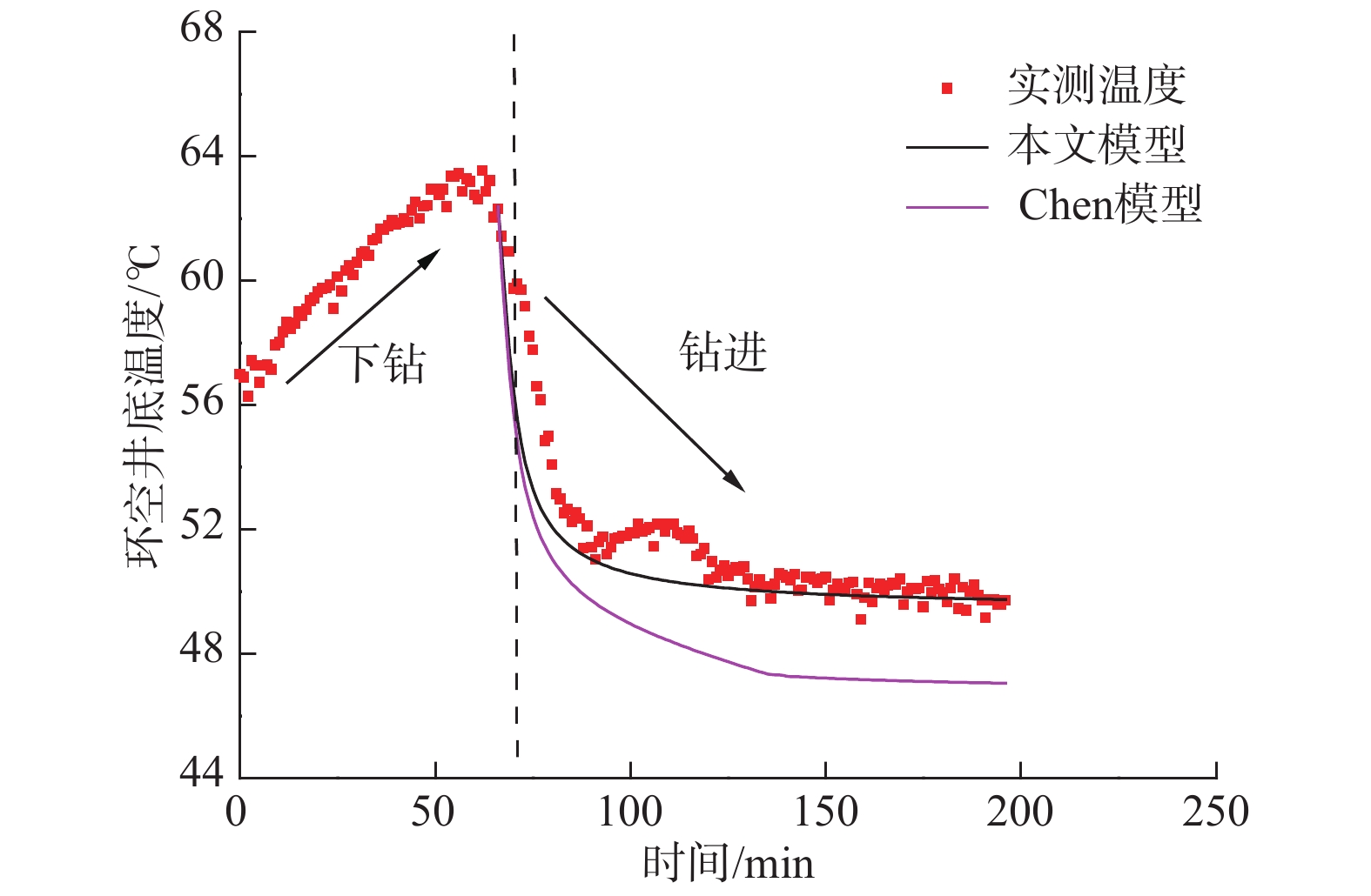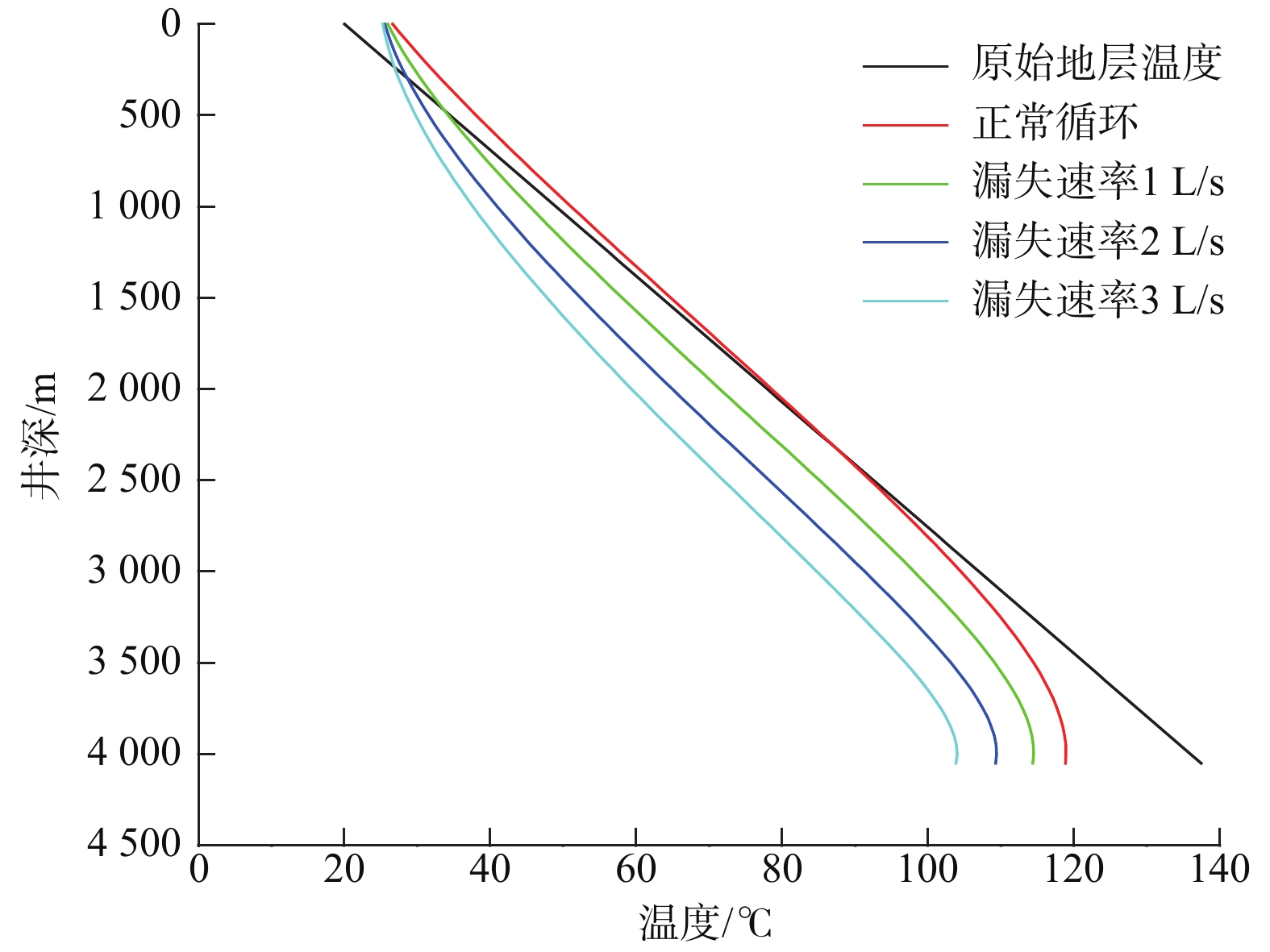 • 摘要: 针对发生井漏时井筒流体温度预测准确度低和漏层位置判断难度大的问题,在分析漏失循环条件下井筒传热规律的基础上,综合考虑热源项和变质量流动对井筒温度的影响,建立了漏失循环条件下直井井筒温度场模型,利用现场实测数据验证了模型的可靠性,分析了漏失速率和漏失层位对井筒温度分布规律的影响。数值模拟结果表明,与Chen模型相比,所建模型的温度计算结果更接近于实测温度,平均相对误差为2.1%;漏失循环条件下,漏失速率对井底流体温度的影响明显大于其对井口流体温度的影响;此外,漏失发生在上部裸眼井段时,环空流体温度梯度分布曲线上均有一个拐点,且拐点位置与漏层位置一致。研究结果表明,所建模型可以准确预测漏失循环条件下直井井筒中的温度分布,现场可根据环空温度梯度分布曲线判断漏层位置。