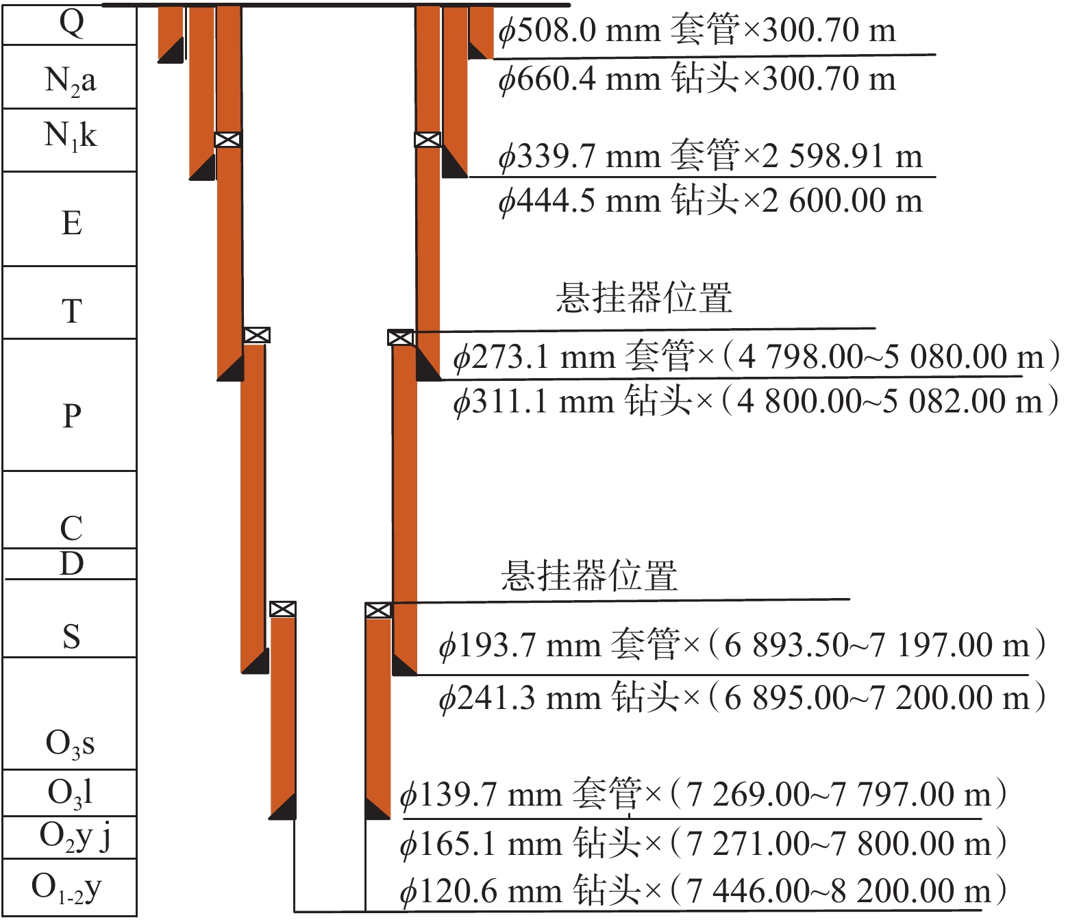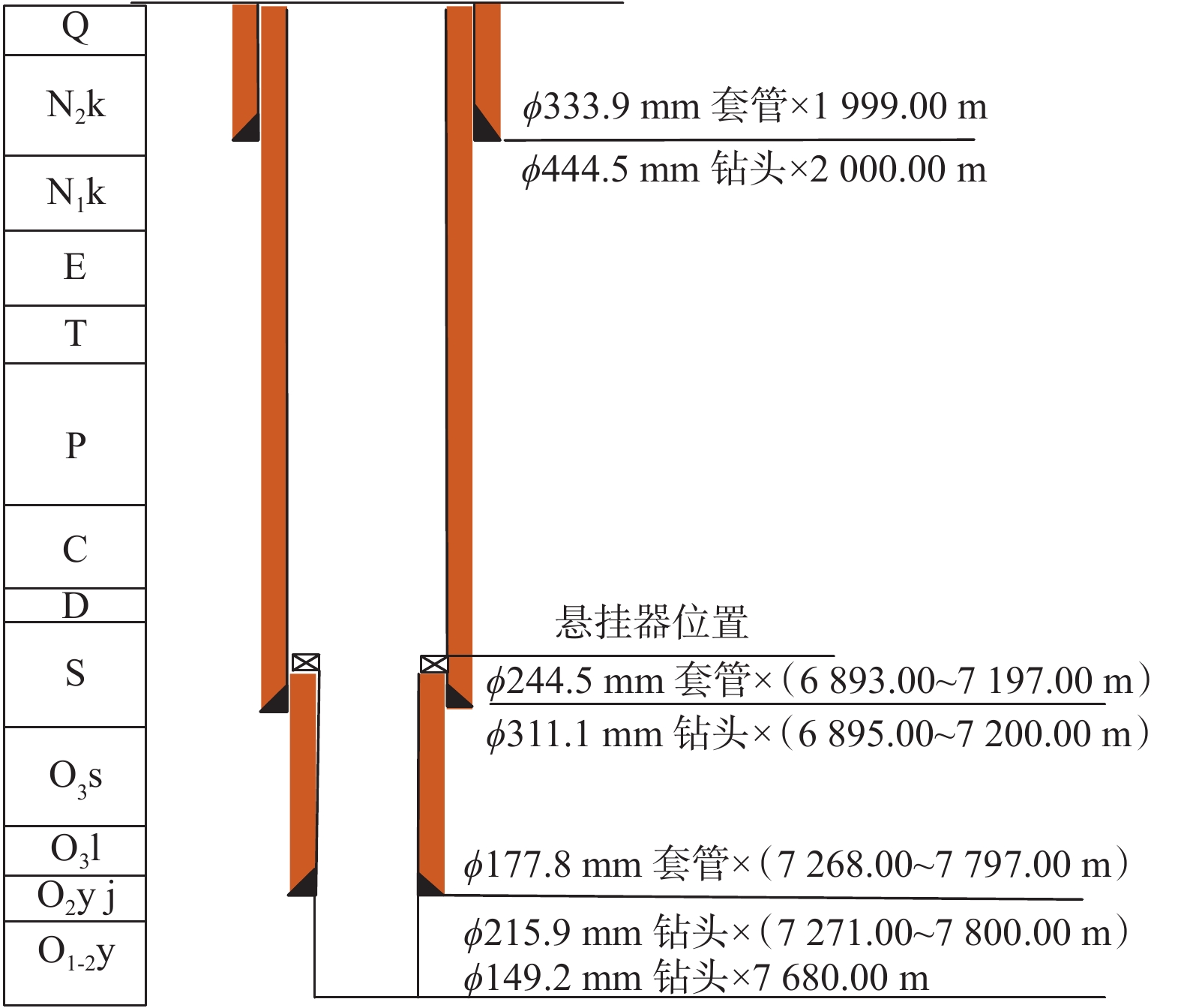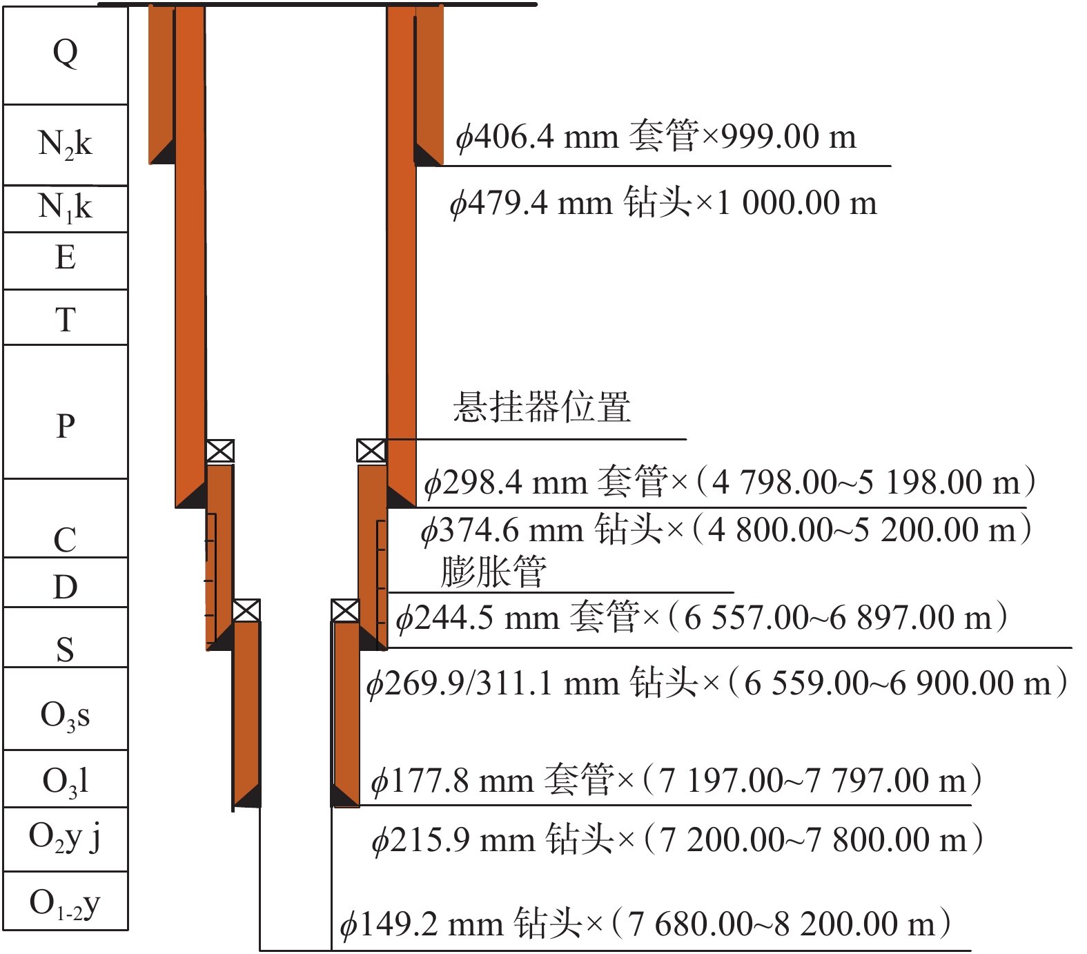 • 摘要: 随着顺北油气田勘探开发的不断深入,原有井身结构开始显现出钻井风险大、效率低等问题,亟需优化井身结构。为此,利用已钻井的测井资料,利用Drillworks 软件计算了地层的孔隙压力、破裂压力和坍塌压力,并结合已钻井的钻井资料和岩石力学试验结果对计算结果进行修正,得到了顺北油气田地层的三压力剖面,根据地层三压力剖面确定了地质工程必封点。根据地质工程必封点,综合考虑钻井技术水平和钻井完井要求,设计了5种井身结构,通过预测5种井身结构的钻井周期、钻井成本,对比优缺点,选用了四开非常规井身结构。顺北油气田超深井采用四开非常规井身结构后,机械钻速提高30%~40%,钻井周期缩短33~45 d,均顺利钻至目的层。这表明,顺北油气田采用优化后的井身结构,提高了钻井效率,降低了钻井风险。