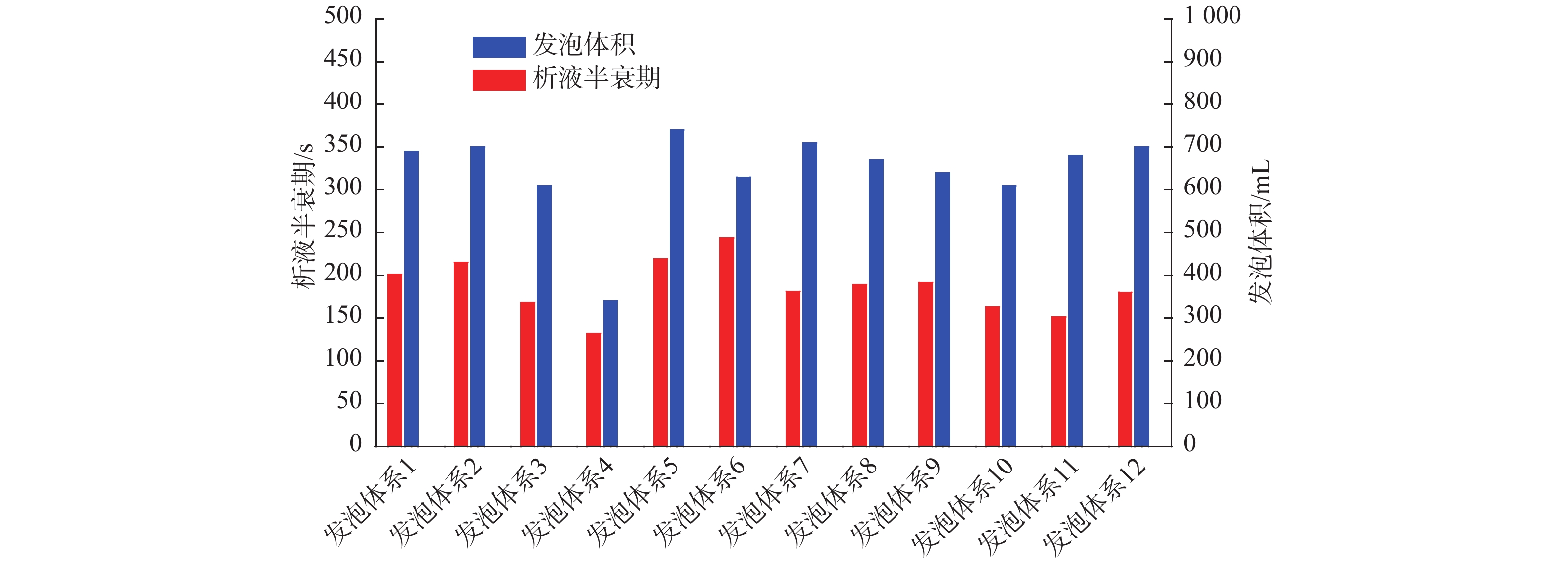 2 generation technology was carried out. Firstly, the optimal gas generation system was selected by evaluating gas generation efficiency. Then, the foaming agent and blocking agent were screened by the Waring-Blender method and sandpack column flow experiment. Laboratory test results showed that gas generation efficiency could reach 96.2% when the gas system was blowing agent A + gas release agent D. The optimal foaming agent system was 0.2% foaming agent 2 + 0.1% foaming agent 5. The foaming volume was 740 mL and the half-life of dissolve-out liquid could be maintained for 219 seconds. When blocking agent 1 was added in the foaming system, the plugging rate could be maintained above 90% in the sandpack column with a permeability of 2 000-10 000 mD. The in-situ CO
