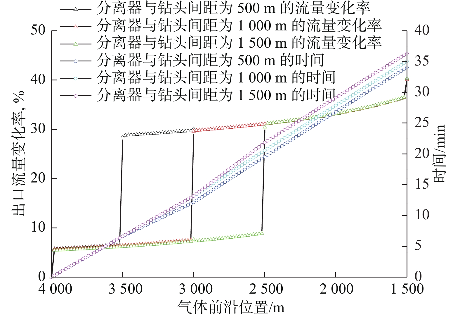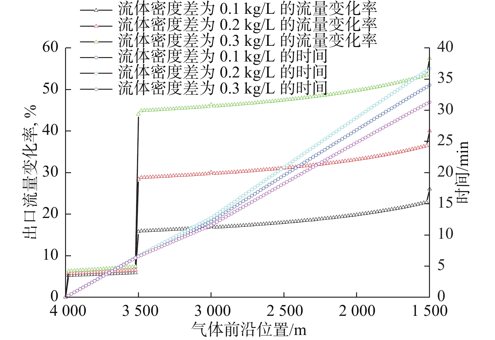 In order to accurately understand the change law of annular flow rate in new dual-gradient drilling under gas cut conditions, a gas-liquid two-phase flow model that considers density mutation has been established according to the theory of gas-liquid two-phase flow in the wellbore. They then analyzed the change of annular outlet flow rate under gas cut condition, as well as the influence of different factors on the change of annular outlet flow rate. The results showed that the change rate of annular outlet flow rate increased abruptly when the gas front reached the separator. Further, when the separator was located below the mud line, an abrupt increase of annular outlet flow rate would occur earlier than that of the gas at the bottom of the riser, which was helpful to the earlier identification of gas influx. Further, the influence degrees of density difference of light/heavy drilling fluids, gas influx, flow rate, separator position, well depth and wellhead back pressure on the change of annular outlet flow rate were reduced in turn. The gas-liquid two-phase flow model that considers the density mutation could accurately predict the change of annular outlet flow rate in the new-type dual-gradient drilling under gas cut condition,and provide a theoretical basis for early overflow monitoring in the new-type dual gradient drilling.