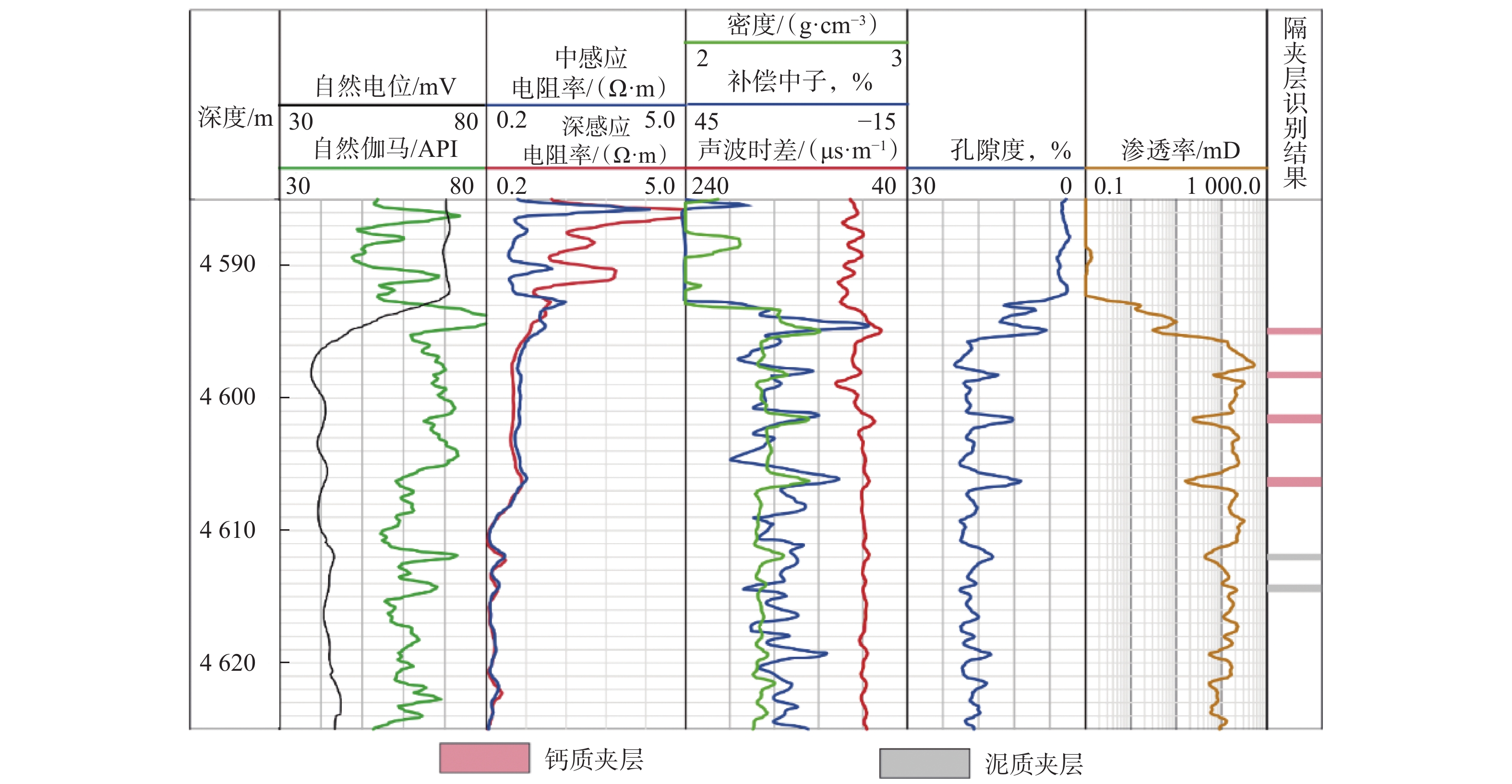 In order to study the spatial distribution characteristics of interlayers and reveal the distribution pattern of remaining oil, interlayers between wells were predicted and identified. Firstly, the types of interlayers were determined from core analysis, and the identification criteria was established along with logging data.Then, an inversion algorithm was designed on the basis of electric logging for the distribution of interlayers beyond horizontal wellbore. The results demonstrate that the intersection of relative density or relative value of neutron with relative value of gamma can identify two types of interlayers in the target area with absolute errors of 0.018 m and 0.017 m in the inversed thickness of calcareous interlayers and muddy interlayers, respectively. The calcareous interlayers are more developed, with wide distribution and varied change in thickness, while the muddy interlayers are fewer, with a distribution in the northeast orientation. This study, which can provide a reference in studying the distribution and tapping potential of remaining oil, proves that the prediction of interlayer distribution between wells can be more accurate after the interlayer distribution beyond the wellbore is inversed on the basis of horizontal-well resistivity and the inter-well distribution of interlayers determined with the joint control of vertical wells.