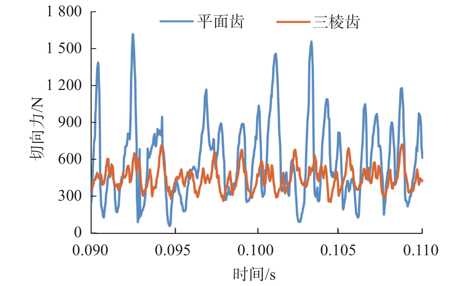 The lack of clarity over the rock breaking mechanism of triangular prismatic cutters hinders their effective applications. In view of this, the finite element method was employed to conduct a numerical simulation analysis of triangular prismatic cutters in this study with the aim of clarifying the change rules of various cutter force during rock breaking and revealing the rock breaking mechanism. The results of numerical simulation and scraping experiments suggested that triangular prismatic cutters and planar PDC (polycrystalline diamond compact) cutters demonstrated a distinct difference in the stress on the rocks during breaking. The tangential force and its fluctuation were smaller when a triangular prismatic cutter was used to break sandstone as compared with a conventional planar cutter under the same conditions. The field test of the PDC bit with the triangular prismatic cutters proved a high efficiency in rock breaking and impact resistance in strata with high abrasiveness and strong impact. This study demonstrates that breaking rocks using tension and shear, triangular prismatic cutters can make the tangential force and torque smaller and the impact resistance and abrasion resistance higher. In that way they can enhance the rock breaking efficiency and prolong the service life of bits.