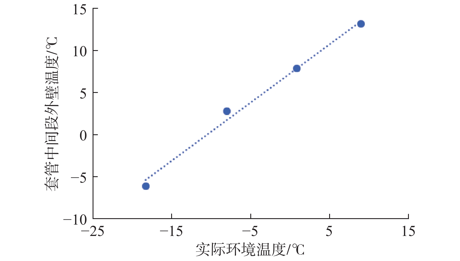 In the process of drilling in permafrost, the frozen soil is susceptible to melt under the influence of drilling fluid. To solve this problem, casing with parasitic pipes and central tubing was introduced to insulate the pipe from the permafrost. Then, a set of test system for the thermal insulation of casing with parasitic pipes and central tubing was designed to analyze its performance and influencing factors. The experiment reveals that the central part of the casing can effectively suppress heat transfer in the radial and axial direction and keep the outer wall at a low temperature. However, thermal insulation of the couplings on both sides are poor, which raise the outer wall temperature, resulting in a U-shape distribution of it. In addition, the sensitivity analysis and single-factor fitting of environmental and operational parameters indicate that the temperature rise from the environment and fluids will increase the outer wall temperature linearly, and the increase of drilling fluid displacement will reduce the outer wall temperature following a logarithmic relationship. From the coefficient of the multivariate fitting equation, it is clear that the most influential factor on outer casing wall temperature is the environmental temperature followed by cold fluid and hot fluid temperature. The research results show that using casing with parasitic pipes and central tubing to protect the permafrost is very feasible, and engineering technical measures such as lengthening the intermediate casing section, improving the coupling structure, maintaining low temperature and displacement of cold fluid can significantly improve the protective effect.