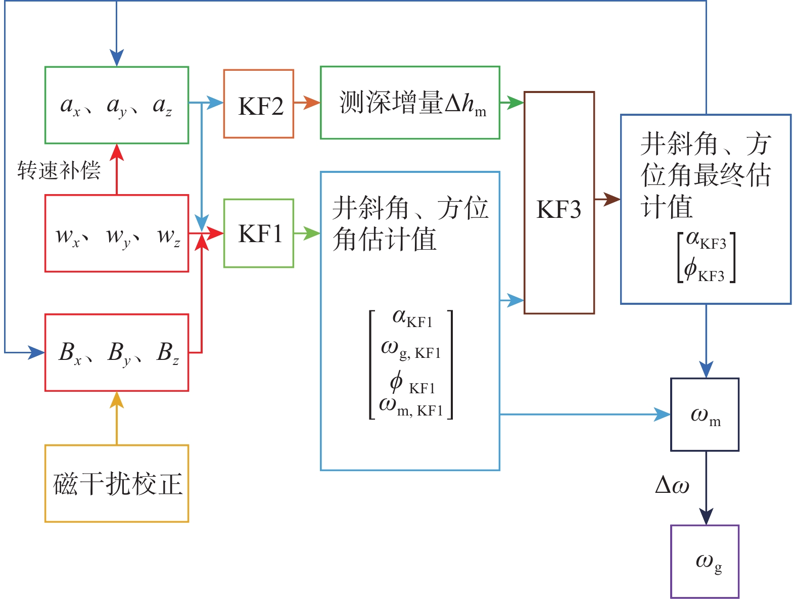 When borehole trajectory parameters are measured while drilling by a measurement system of triaxial accelerometers, fluxgates, and rate gyros, the results show huge deviations due to the influence of factors such as rotation, vibration, and magnetic interference, etc. As a result, the requirements of geosteering while drilling cannot be met. Considering this, a quaternion-based measurement model of borehole trajectory parameters was built for the above measurement system. In addition, according to state equations and measurement equations, three strap-down Kalman filters and a correction system for magnetic interference were applied to filter and correct accelerometer and fluxgate signals. In this way, a dynamic measurement method of near-bit borehole trajectory parameters based on data fusion was developed. The simulations in the laboratory and on-site drilling showed that the measurement precision of borehole trajectory parameters was significantly improved by using the proposed method. The research indicates that the proposed method can eliminate the influence of rotation, vibration, and magnetic interference on the results of the measurement system of triaxial accelerometers, fluxgates, and rate gyros while drilling to upgrade the measurement precision for geosteering, thus meeting the requirements of geosteering while drilling.