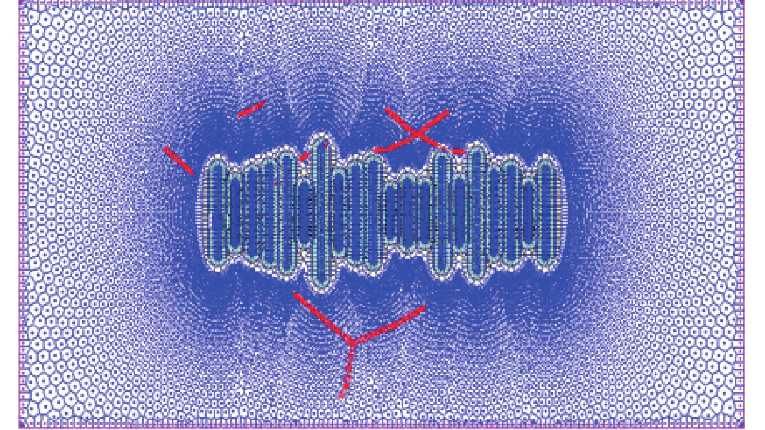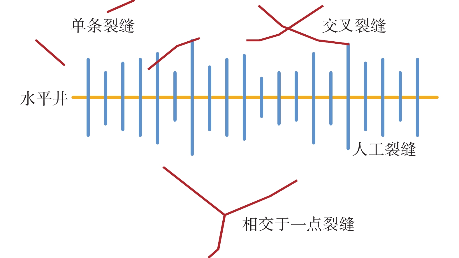Models for multiphase flow in embedded fractures and multi-fracture-intersecting networks were built to accurately characterize the flow of multiphase fluid in complex fractures in shale oil reservoirs. The numerical simulation method was utilized to analyze the flow law of multiphase fluids in the multi-fracture-intersecting networks. The results show that the numerical simulation method for the multiphase flow in the fracture networks solves problems such as single fluid type characterization, large fracture scales, high requirements for meshing accuracy, and discontinuity of fluid parameters at the fracture interface. This method can be used to assess the communication scale of hydraulic and natural fracturesand the distance between them. The formation pressure calculated by the numerical simulation method can be used to characterize the pressure variation near the fracture networks of shale oil reservoirs with the production time. The numerical simulation method proposed in this paper shows high efficiency in computing, and provides a new technical approach for the evaluation of shale oil reservoirs.