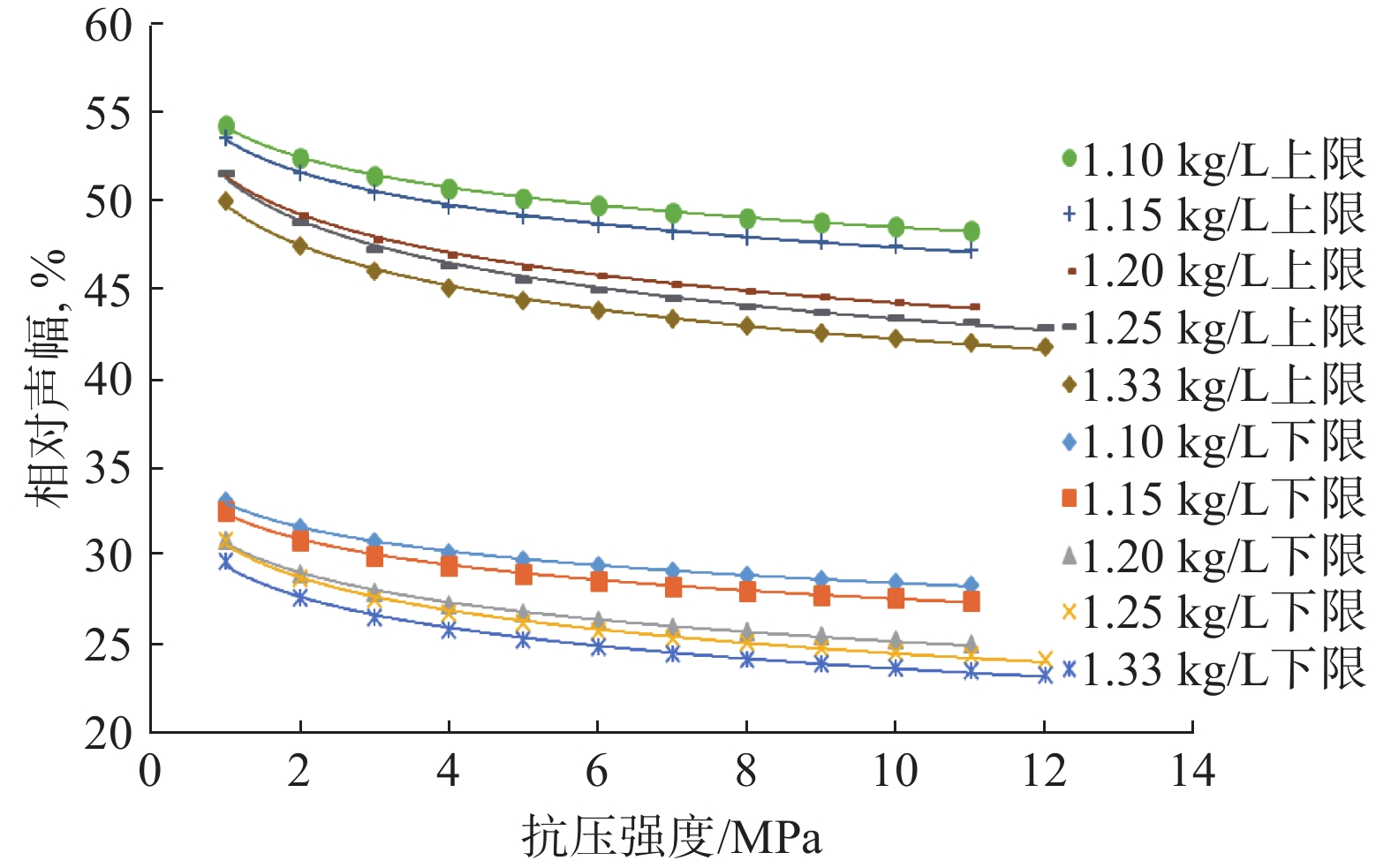 For an accurate cementing quality evaluation of ultra-low-density cement slurry, an indoor experiment was carried out to study the influence of parameters such as curing time, temperature, and density on the strength and acoustic properties of ultra-low-density cement stone. The relationship equation between the compressive strength of cement stone with different density and the acoustic velocities of P-waves and S-waves was obtained by mathematical fitting. In combination with the downhole acoustic field analysis of cased wells, an improved algorithm of relative acoustic amplitude was developed for the evaluation of ultra-low-density cement slurry logging based on compressive strength, and a correction type-curve of relative acoustic amplitude was built on that basis. The verification results showed that for the cement slurry of cenospheres, the relative acoustic amplitude corresponded well to compressive strength, and with the increase in compressive strength, the relative acoustic amplitude decreased. Under the same compressive strength, the relative acoustic amplitude was reduced with the growth of cement slurry density. The research demonstrates that the application of the correction type-curve of relative acoustic amplitude for the cementing quality evaluation of ultra-low-density cement slurry can significantly improve the accuracy and pertinence of cemen-ting quality evaluation.