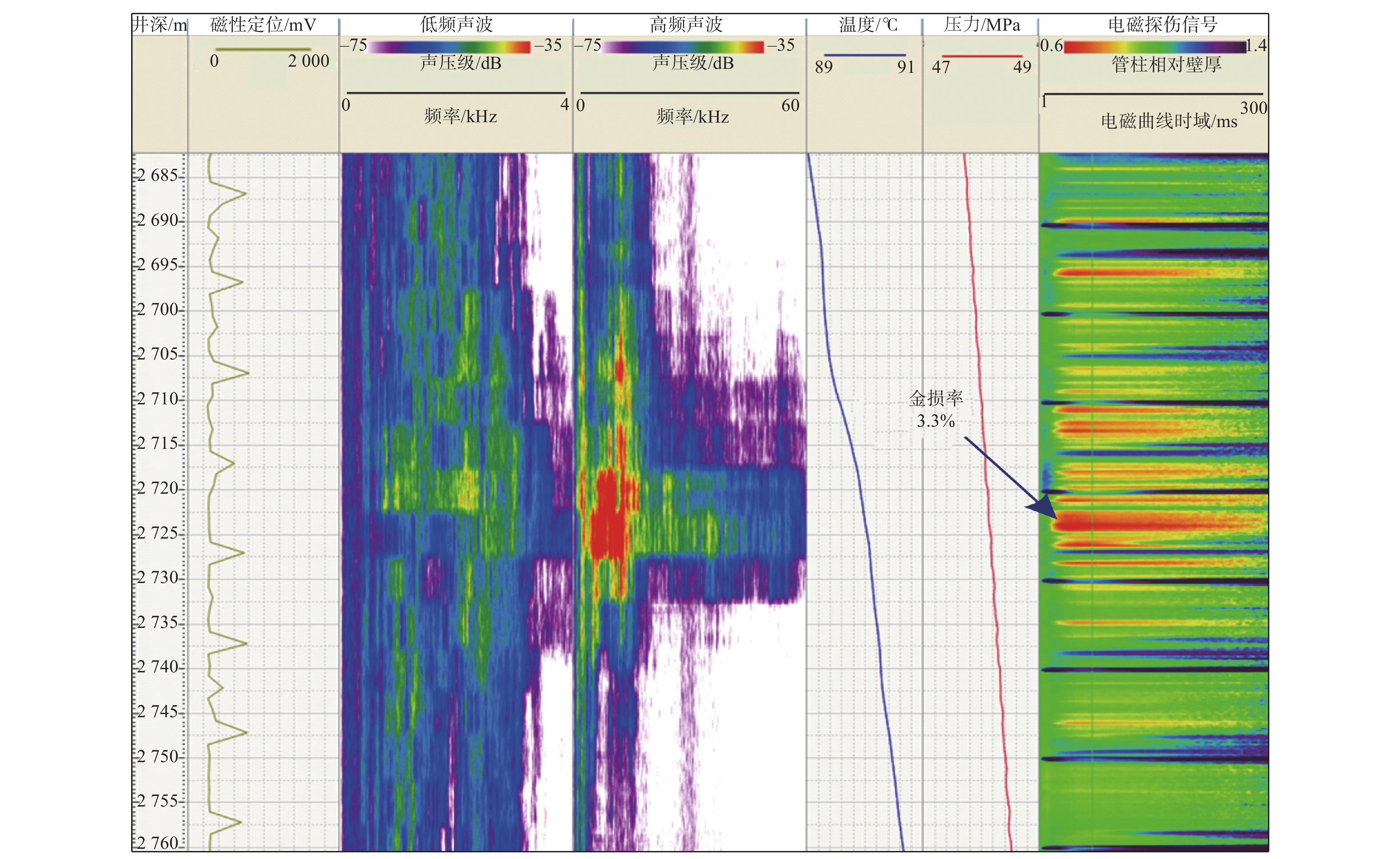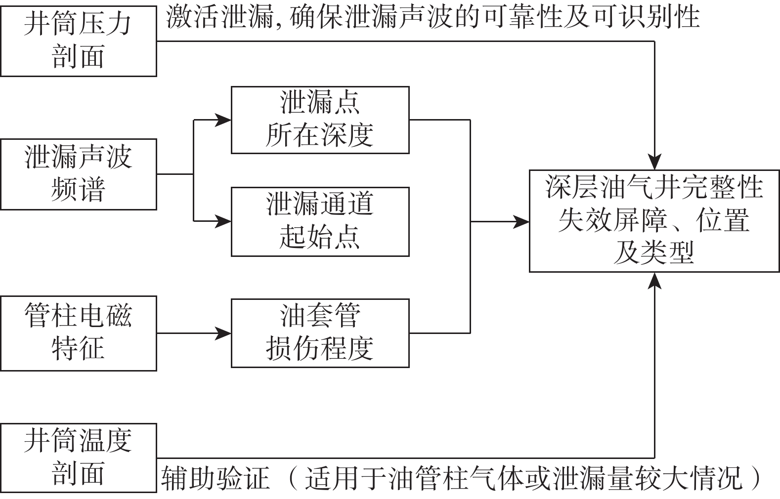 Given the problems of multiple failure points and various failure types of wellbore integrity and the difficulty in locating and identifying failures in deep oil and gas wells, a method for wellbore integrity detection was proposed on the basis of available detection methods and integrated optimization of related equipment and processes. With acoustic and electromagnetic features as the core, this method could locate and identify tubing leakage, thread leakage, casing leakage, cement sheath channeling outside of the casing, leakage under liquid level, and multiple leakages. The wellbore integrity of a test well was detected by this method. Two leakage points in the production string and the leakage types were identified. The research and field tests indicate that the proposed method can accurately identify the failure types and locate the failure points of wellbore integrity in deep oil and gas wells. This study provides technological support for the construction, workover, and wellbore integrity management of deep oil and gas wells.