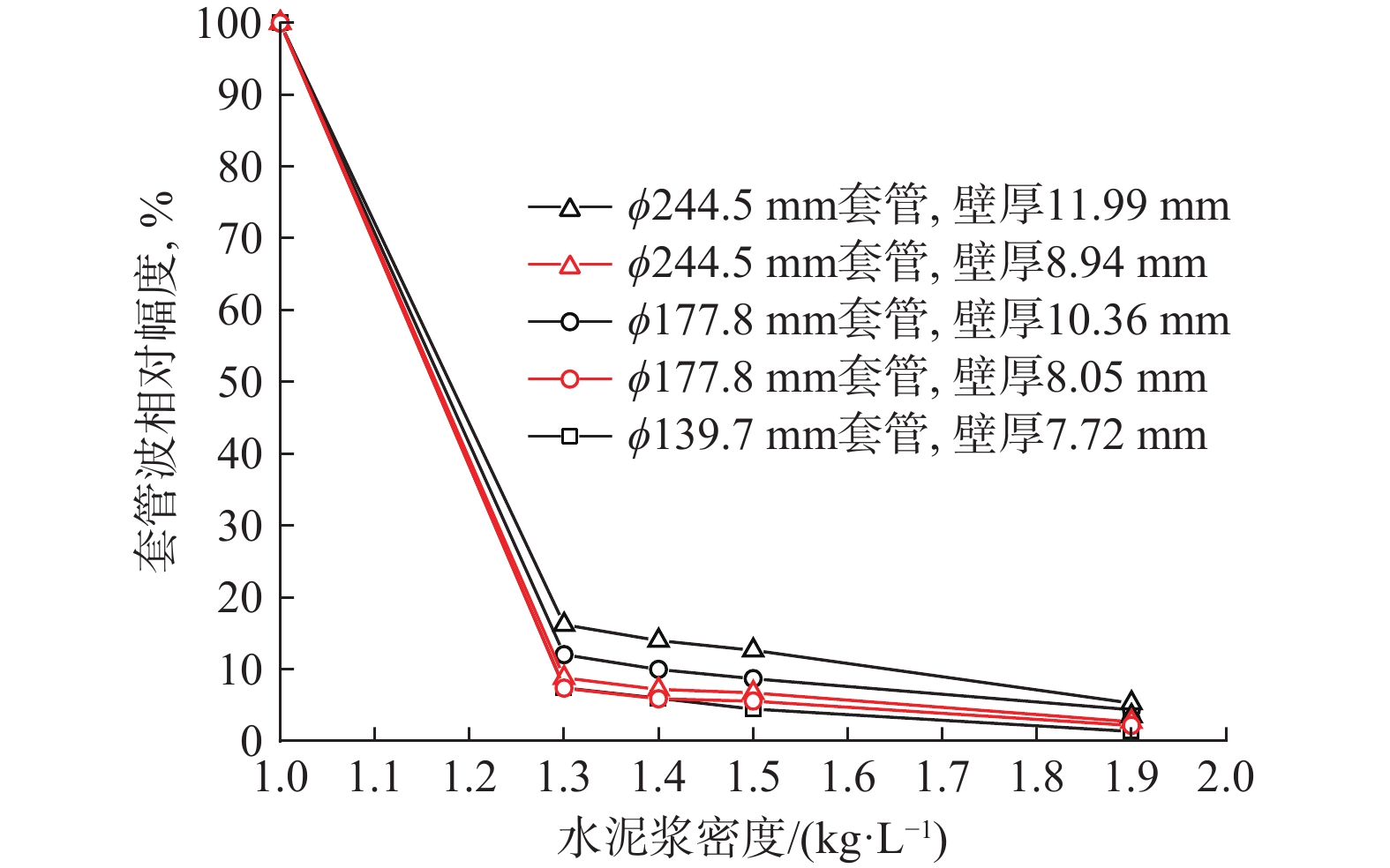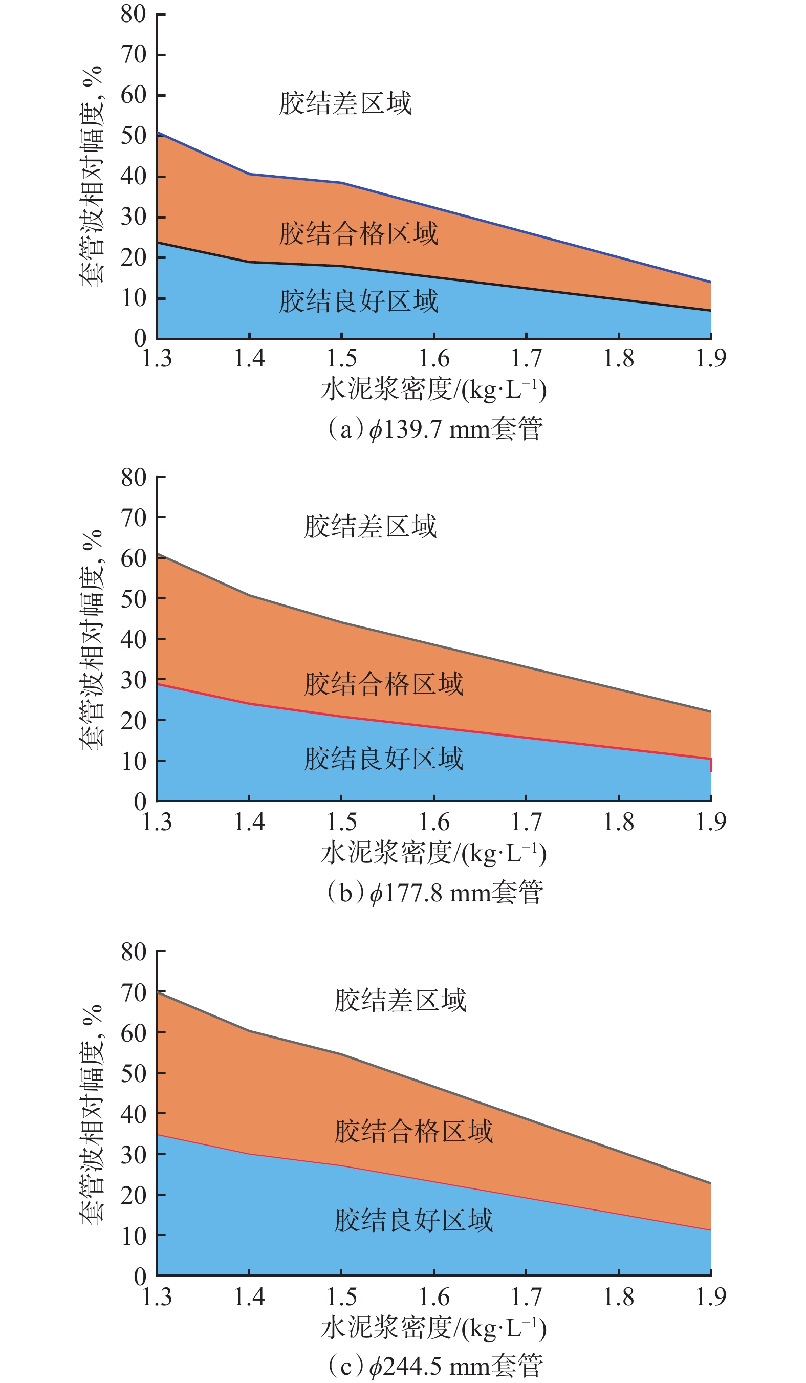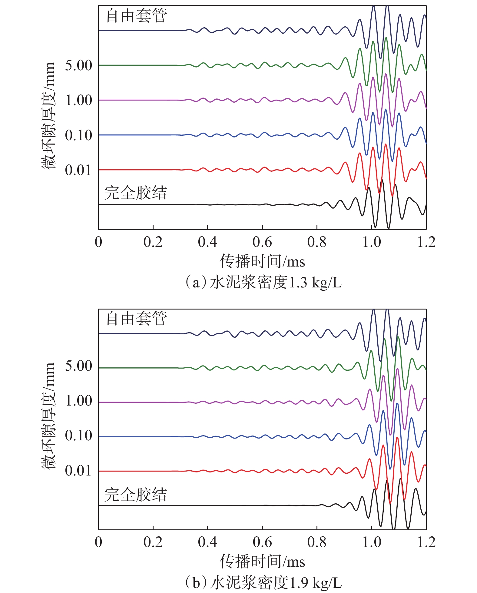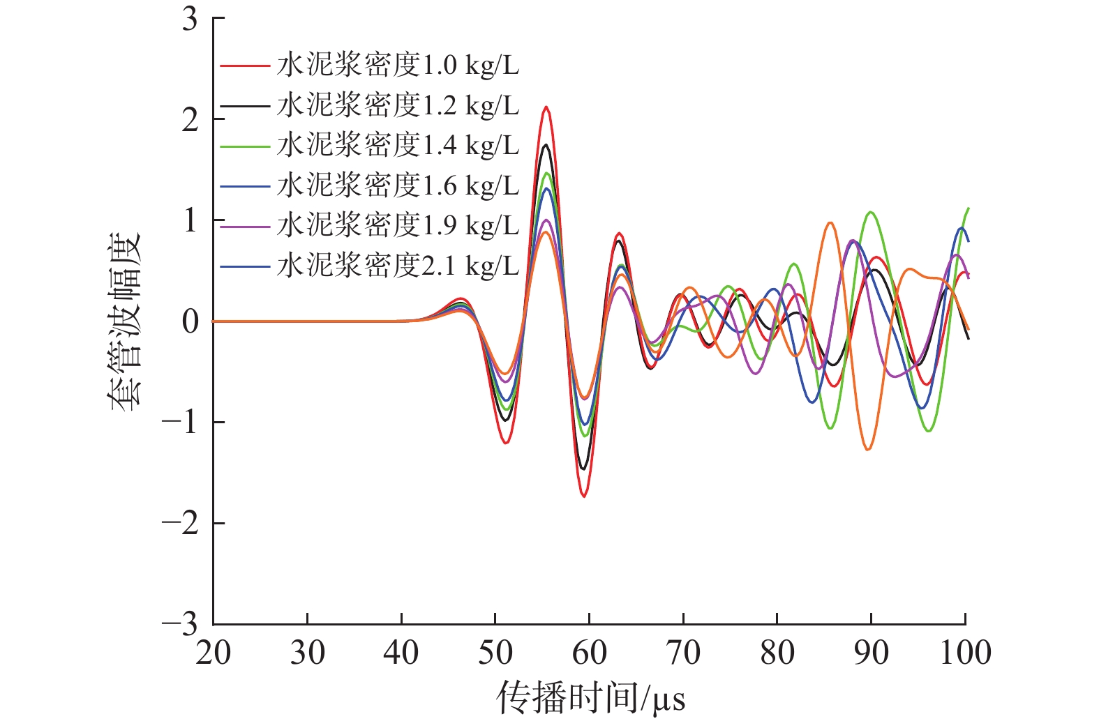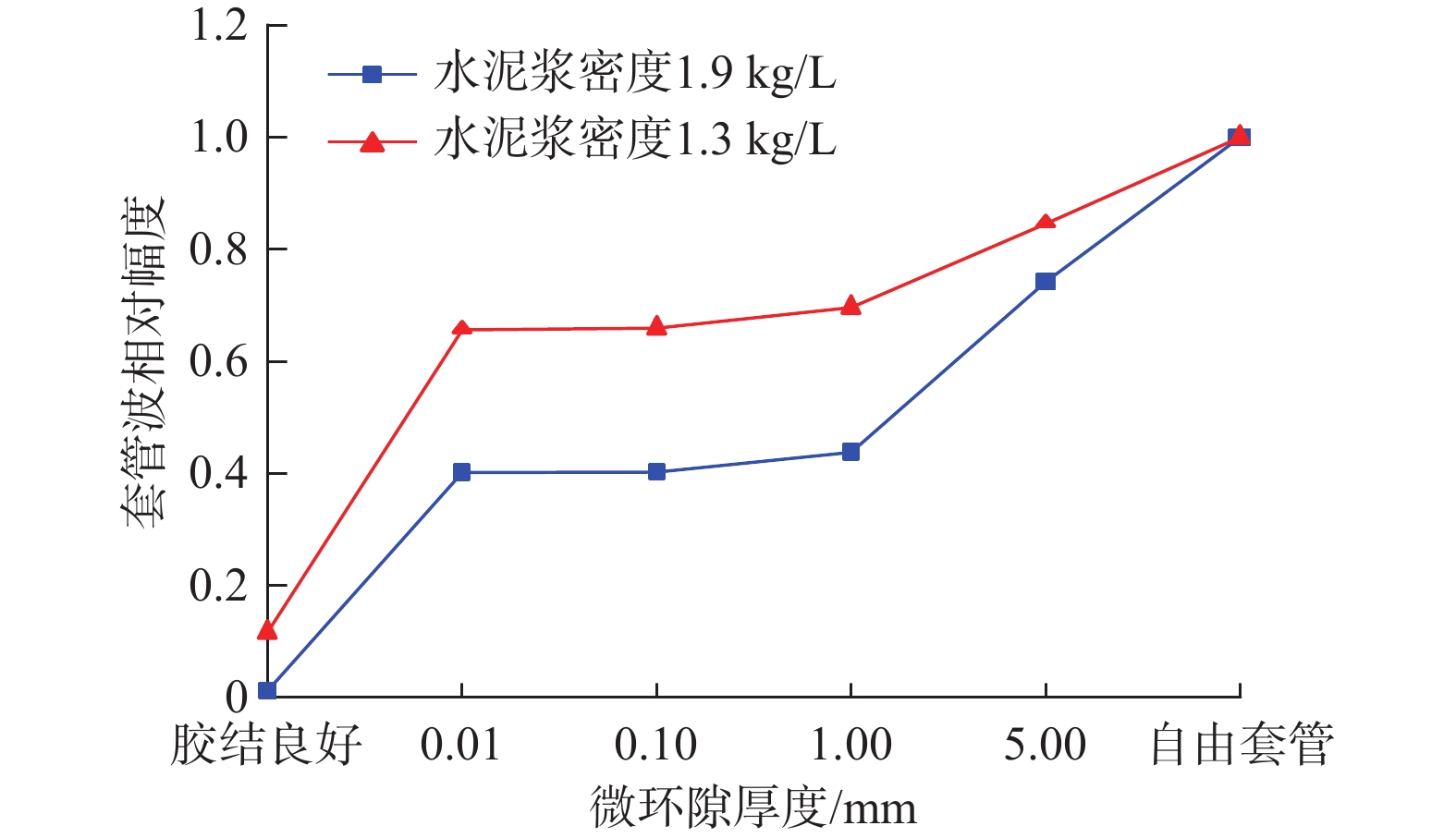 To provide a theoretical basis and criteria for the logging evaluation of the cementing quality of low-density cement slurries, the impacts of cement slurry density, cement sheath thickness, and cementing quality at the first interface on the conventional logging of cementing quality were analyzed according to the results of tests on acoustic characteristics at high temperatures and numerical simulation. The following understandings were obtained by the analysis: Affected by the outer diameter and thickness of casing, the difference in the relative amplitude of casing wave became increasingly obvious as the cement slurry density decreases. When there is a micro-annulus between the casing and the cement sheath, the amplitude increased monotonically with the the increase of cement sheath thickness and tended to be gentle when the cement sheath thickness was large. The micro-annulus significantly enhanced the amplitude of casing wave, especially for low-density cement slurry cementing. However, the effect of the cement slurry density weakened markedly after the thickness of the micro-annulus was increased to 5 mm. Depending on the analysis results, a log interpretation chart was established, and logging evaluation criteria were formulated for the cementing quality of low-density cement slurries. The evaluation criteria are expected to provide useful guidance for the logging evaluation of the cementing quality of low-density cement slurries in engineering practice.