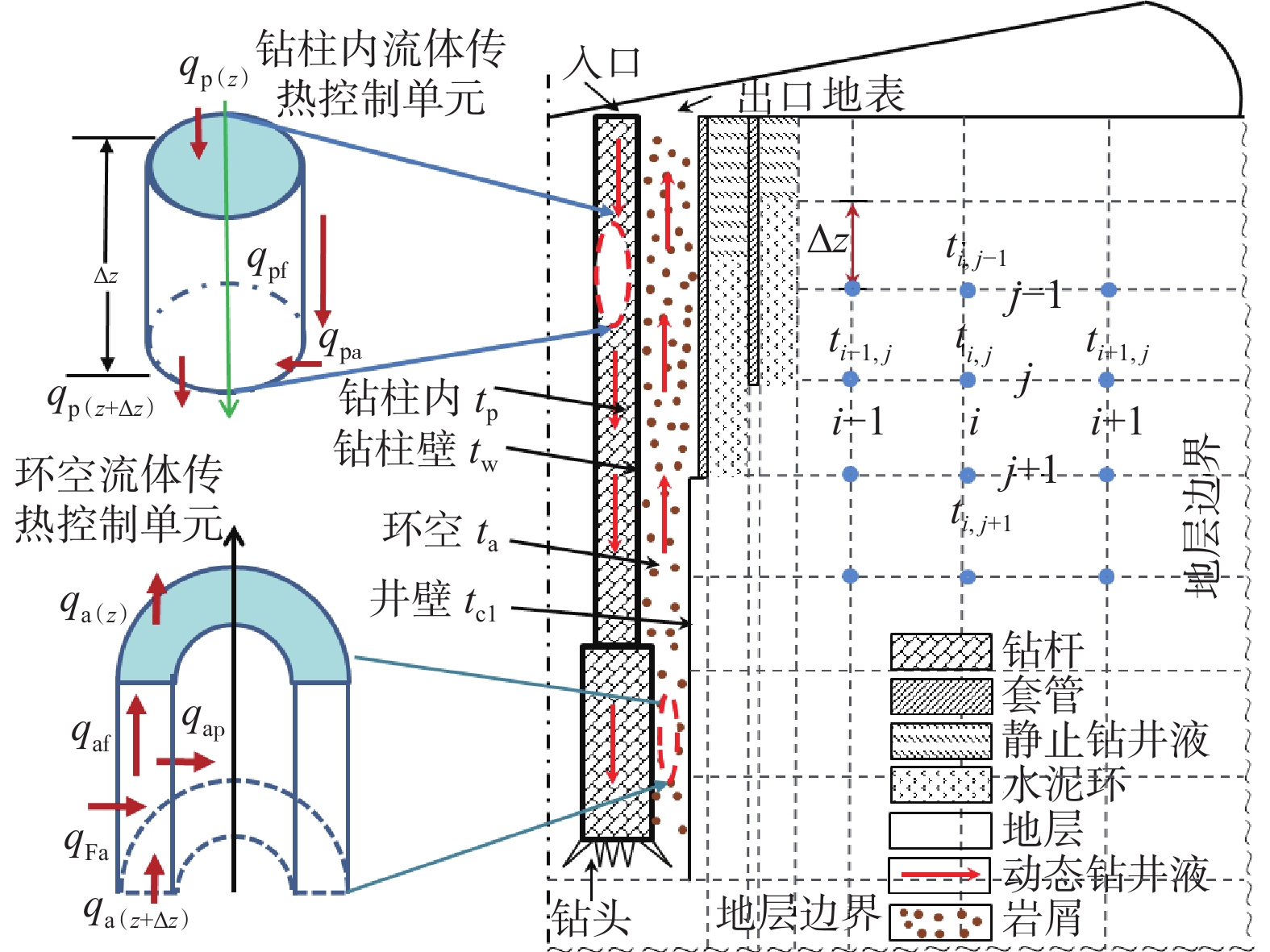 The accurate prediction of wellbore temperature during drilling is the key factor in the scientific evaluation of wellbore fluid flow safety and pressure control. Therefore, based on the principle of energy conservation between wellbore and formation in each area, the numerical and analytical models for wellbore-formation heat transfer were built. The fully implicit finite difference method and the analytical method were adopted to solve the mathematical models, respectively. Given the wellbore structure and drilling parameters of an ultra-deep well in Shunbei Oilfield, calculation accuracy of the above two models on the calculation results and the influencing factors were analyzed from the aspect of the heat transfer mechanism. The analysis showed that during drilling, the annular fluid temperature in the lower well section was lower than the original ground temperature, while the fluid temperature in the upper well section was higher than it. In the analytical model, a simplified dimensionless time function was used to represent the quasi-steady state heat exchange mode from distant formations to near well walls, and the comprehensive heat transfer coefficient was employed to characterize the total heat exchange between the formation and annulus, and between the annulus and the interior of the drill string. As a result, the wellbore-formation heat exchange was reduced, and thus the calculated fluid temperature in the annulus and drill string was lower than the result from numerical simulations. The results revealed that the calculated results of the heat transfer model were highly consistent with the downhole measurements, while the errors of the numerical solution and analytical solution were 1.46% and 6.94%, respectively, with a difference of 13.15 ℃. The research results provide a theoretical basis for an in-depth understanding of the wellbore-formation heat transfer mechanism and the accurate evaluation of the temperature field during drilling.