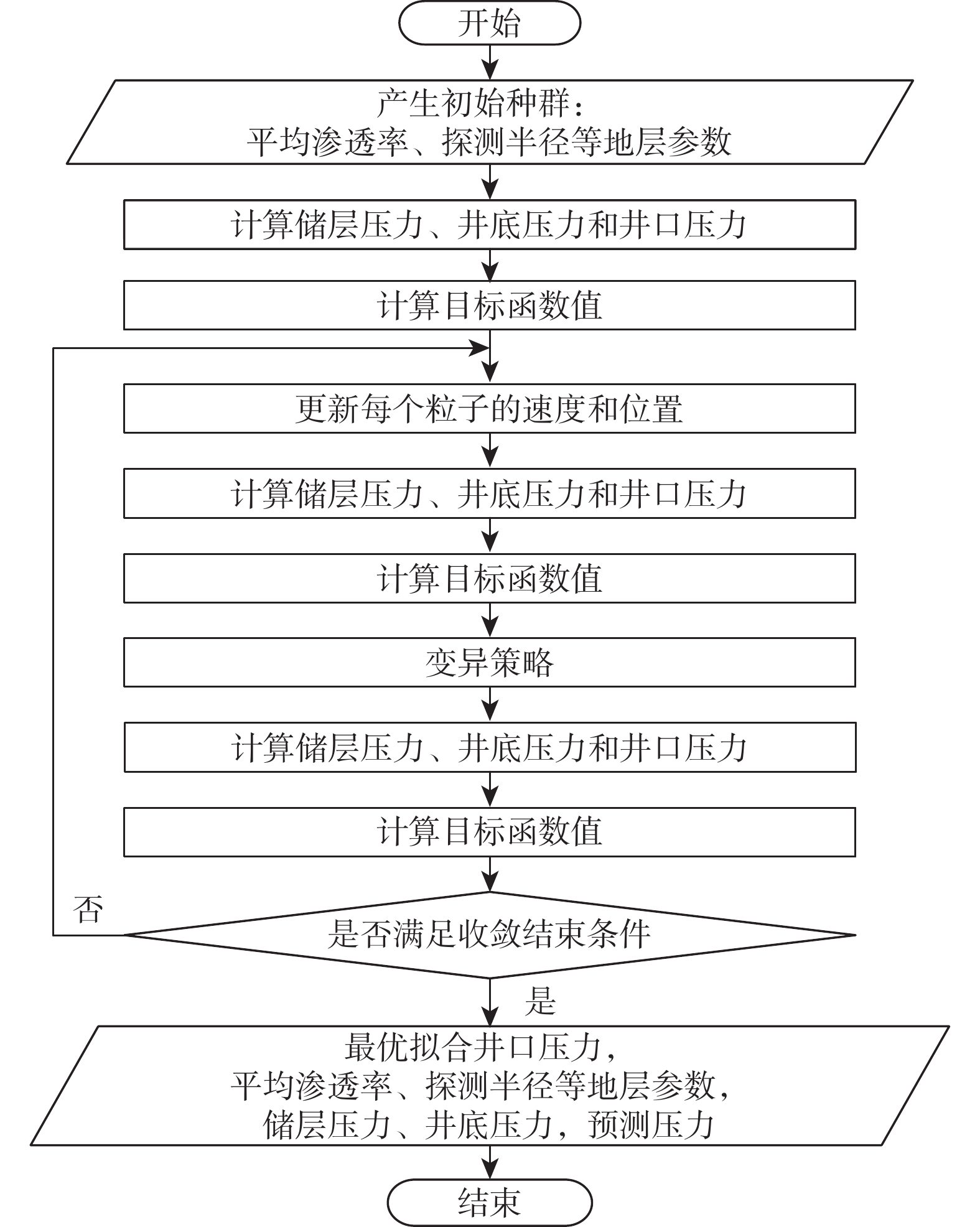 To fully grasp the dynamic pressure variations during gas injection of underground gas storage (UGS) and resolve the difficulty in determining formation parameters caused by continuous gas injection, an integrated calculation method of pressure and formation parameters in gas injection process of UGS was developed according to on-site static and dynamic data. The method was based on an improved particle swarm optimization (PSO) algorithm and integrated the calculation methods of reservoir pressure, bottom-hole pressure, and wellhead pressure. The wellhead pressure was first calculated by these calculation methods, and improved PSO algorithm was then employed to continuously adjust and optimize pressure and formation parameters. In this way, the obtained wellhead pressure could be fitted with measured wellhead pressure to the optimal extent, which could further lead to the determination of formation parameters such as reservoir pressure, bottom-hole pressure, average permeability of reservoirs and investigation radius. The integrated method was used to calculate the wellhead pressure of three injection and production wells and the average permeability of reservoirs. The results show that the determination coefficients for calculated and measured wellhead pressure of the three wells were 0.9889, 0.9893, and 0.9784, and the calculated reservoir permeability was consistent with that obtained from well test interpretation. This indicates that the developed method can produce reliable results. The research results demonstrate that the integrated method can be used to learn the pressure variations during the gas injection process of UGS and is conducive to guiding the safe operation of UGS.