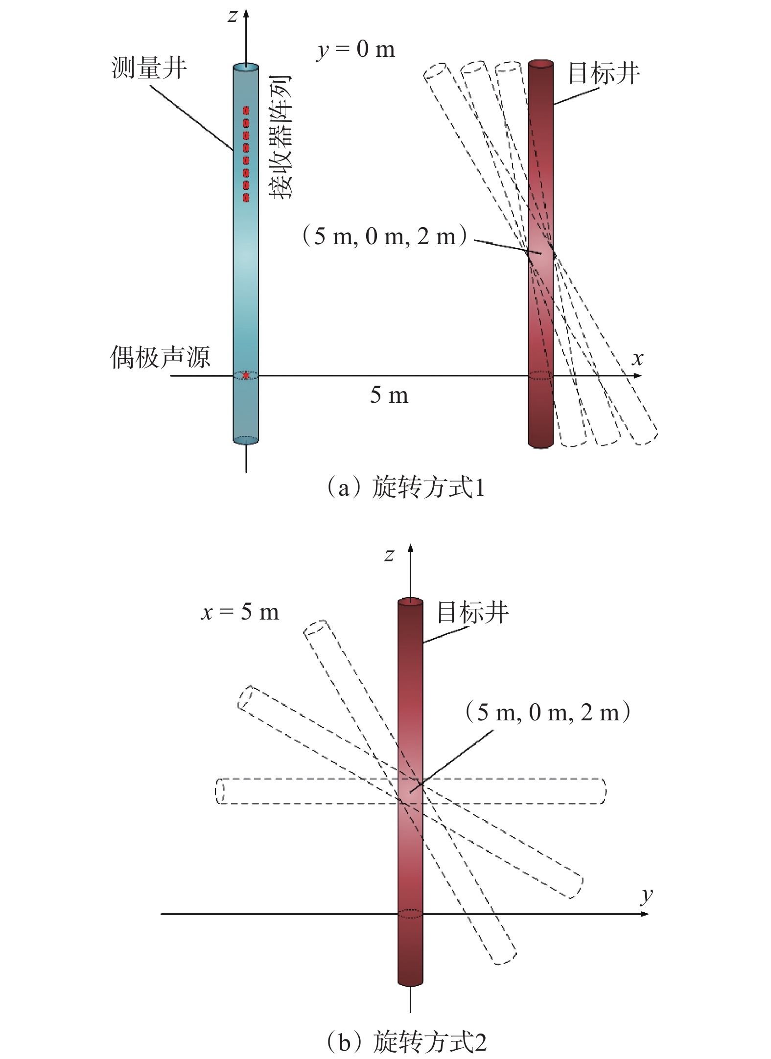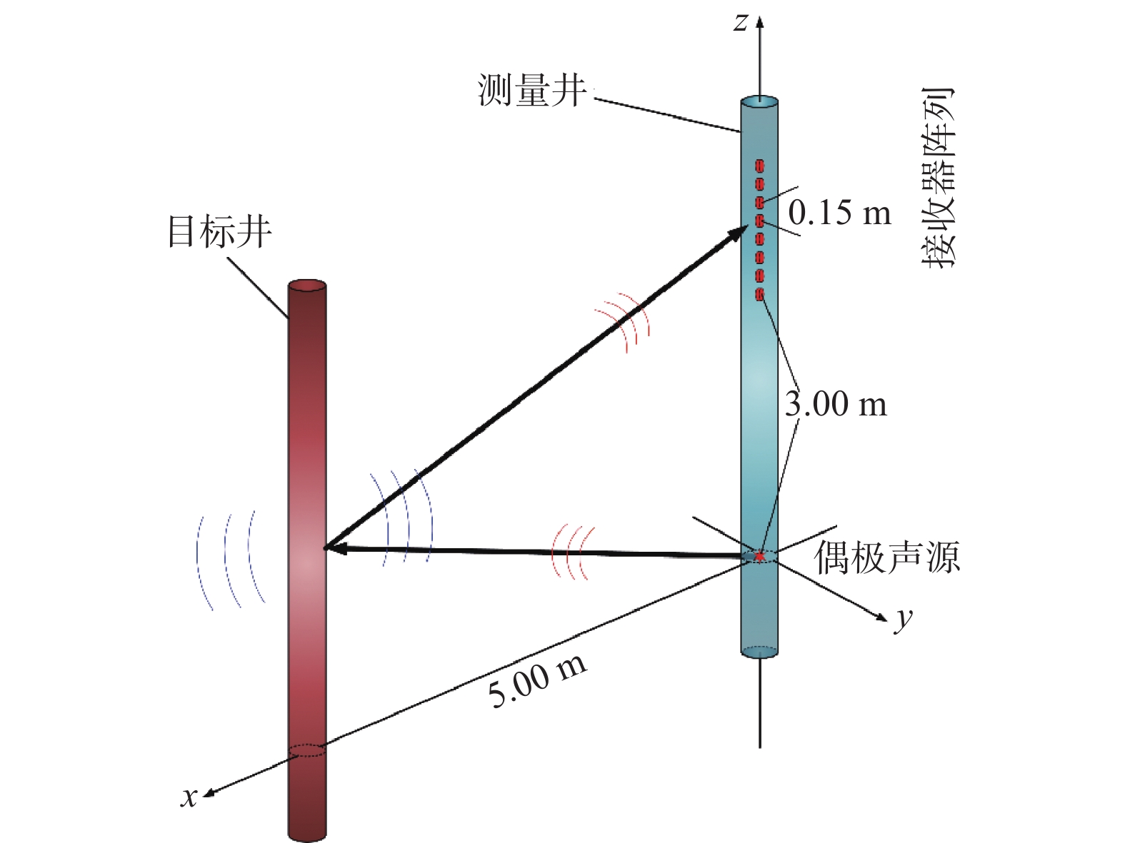 In order to prevent drilling collision in significantly unconsolidated formations and describe borehole trajectories, a dipole P-wave imaging method for adjacent boreholes was developed based on acoustic remote detection logging technology. First, scattered full-wave fields of adjacent wells that were excited by dipole acoustic sources from wells were simulated based on the finite difference method, and the amplitude and azimuth characteristics of different scattered waves were analyzed. Then, the influence of non-coplanar wells on the amplitude and arrival time of scattered waves was studied. Finally, the reliability of dipole P-wave imaging for adjacent wells was verified by a model test of two wells and actual logging data measured in the field. The results indicated that the dipole P-wave was superior to S-wave in adjacent well imaging in significantly unconsolidated formations, and the clearest azimuth after four-component rotation was the azimuth of the target well. In addition, adjacent well imaging was not affected by non-coplanar wells. It was shown by the study results that the dipole P-wave imaging method for adjacent boreholes can provide a new technical tool to prevent drilling collision in shallow unconsolidated formations and describe borehole trajectories.