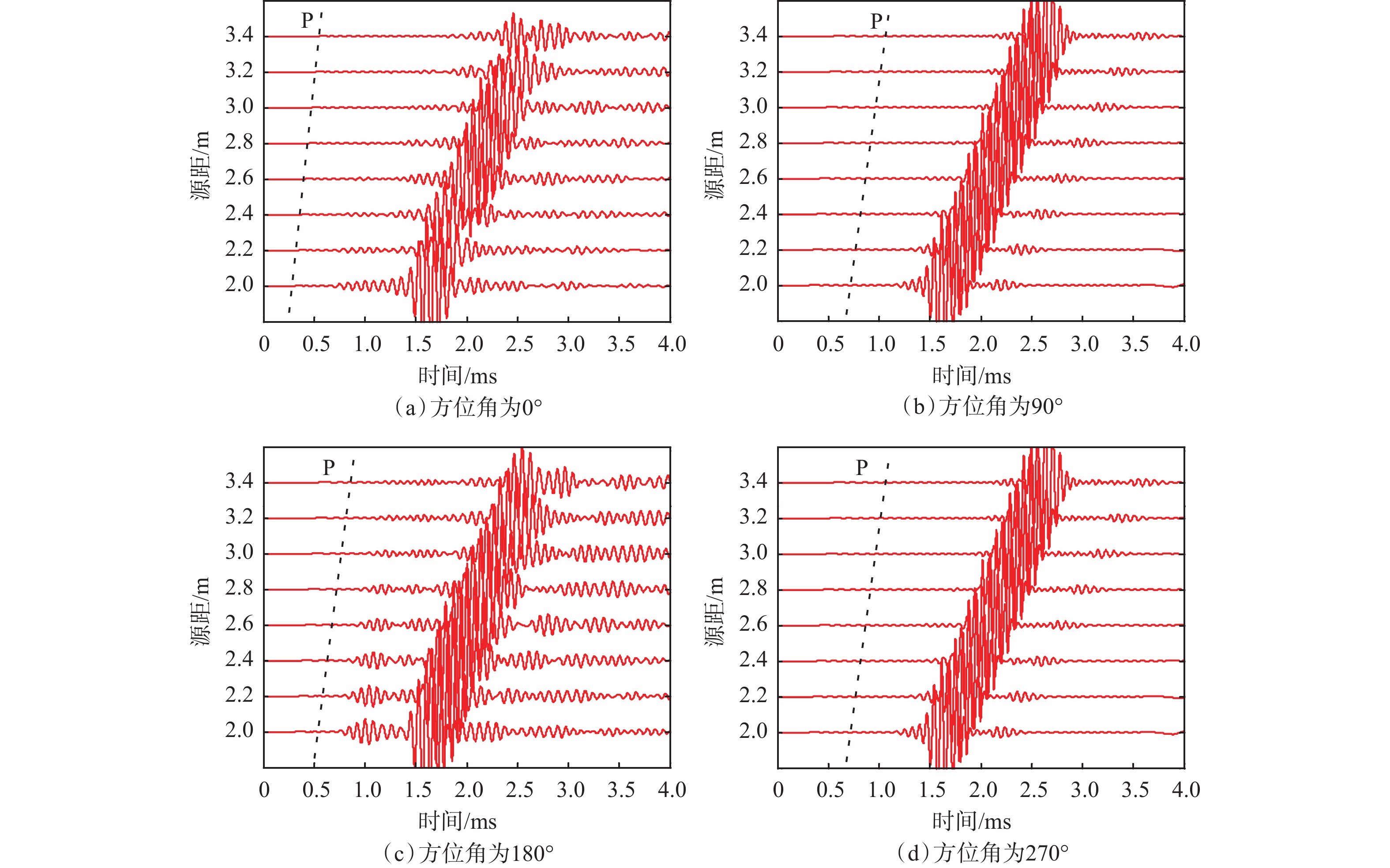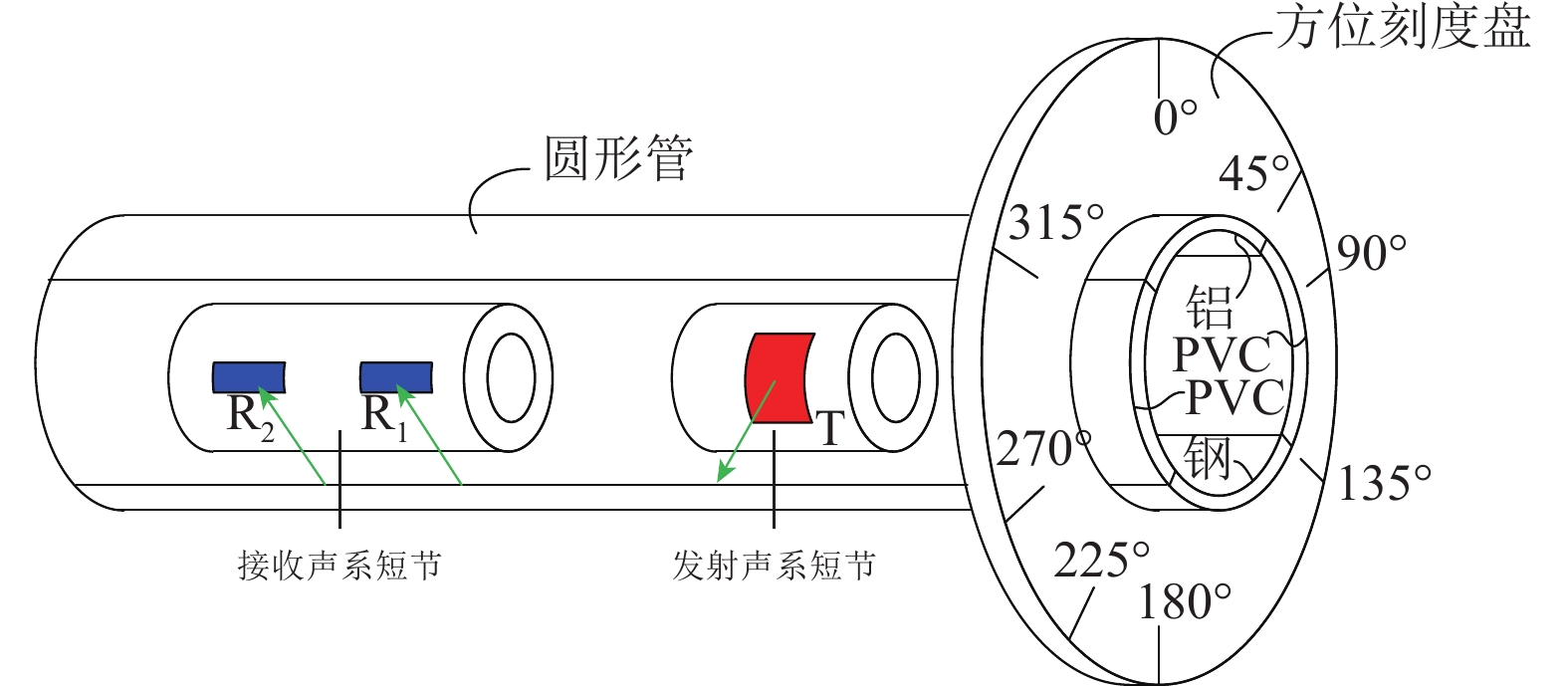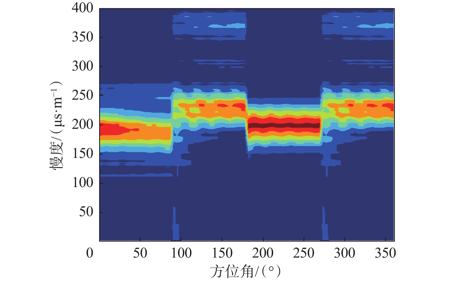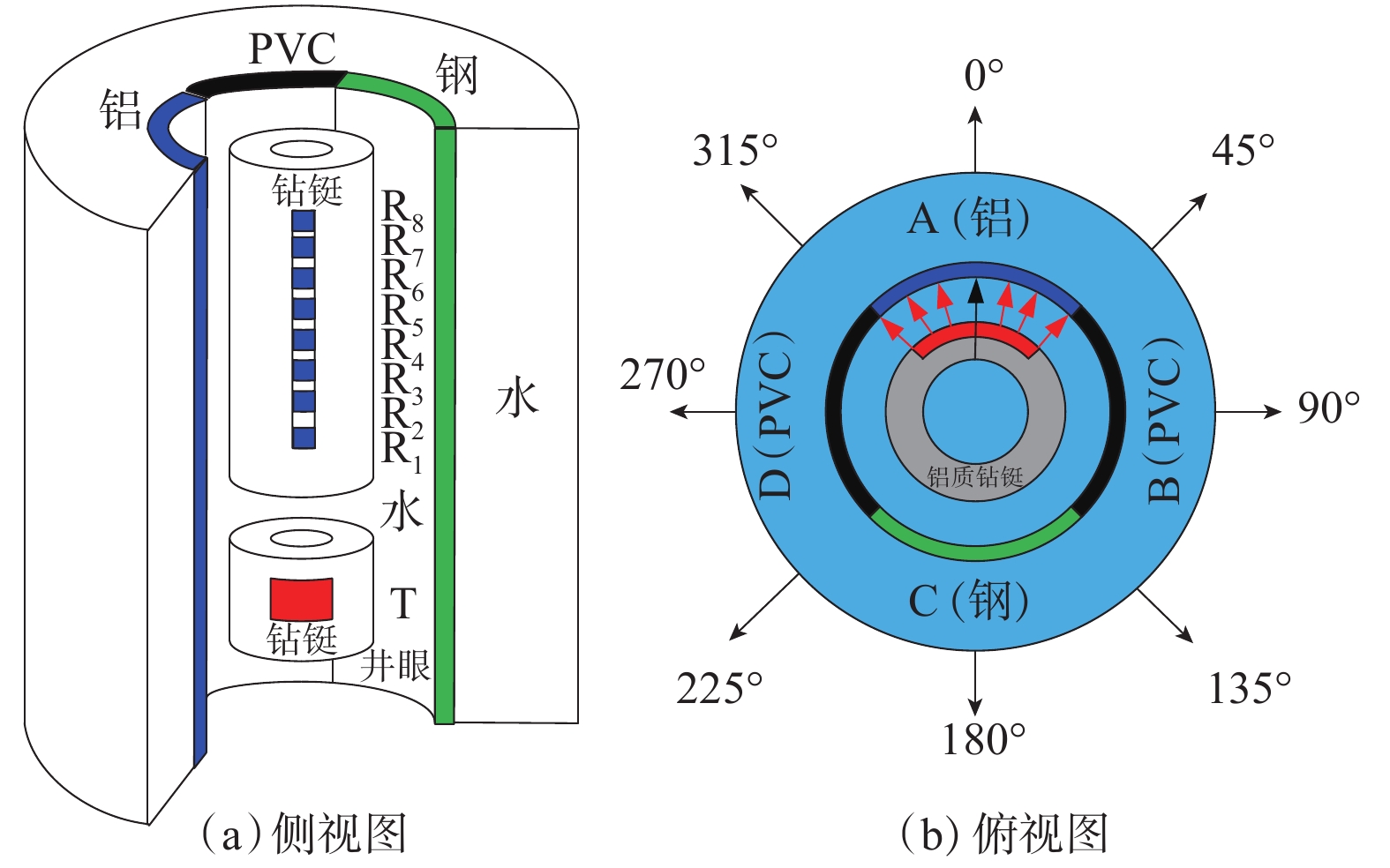 In order to obtain azimuthal acoustic velocity information of formations around wells and evaluate the heterogeneity of the formations, a well model with different velocities in different directions was designed, and the performance of remote detection acoustic logging while drilling (LWD) in measuring azimuthal acoustic velocity was studied. The well model had four sectors, and the velocities of compressional and shear waves in adjacent sectors were different. In addition, acoustic wave propagation of the well model was numerically simulated, and an eccentric transmitter and an eccentric receiver were adopted for measurement. As a result, waveforms recorded by array receivers were obtained with their azimuth angle of 0°, 90°, 180°, and 270°, respectively. Furthermore, azimuthal acoustic velocity information of formations around wells was extracted from the waveforms, and changes in sectors with different azimuths were identified. According to the parameters of the well model with different velocities in different directions, a test device was designed. The tile-like azimuthal acoustic source was used to accurately measure the acoustic velocity of high-speed media in two sectors, and the acoustic velocity variation trend of low-speed media in the other two sectors was identified. The test results were in agreement with the simulation results. The research showed that it is feasible to evaluate acoustic velocity in different directions by the well model with different velocities in different directions, which provides a theoretical basis for geosteering and formation anisotropy analysis by remote detection acoustic LWD.