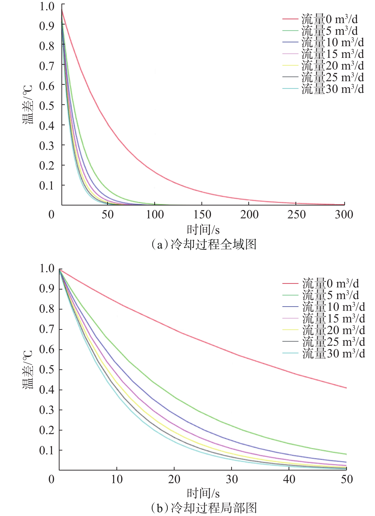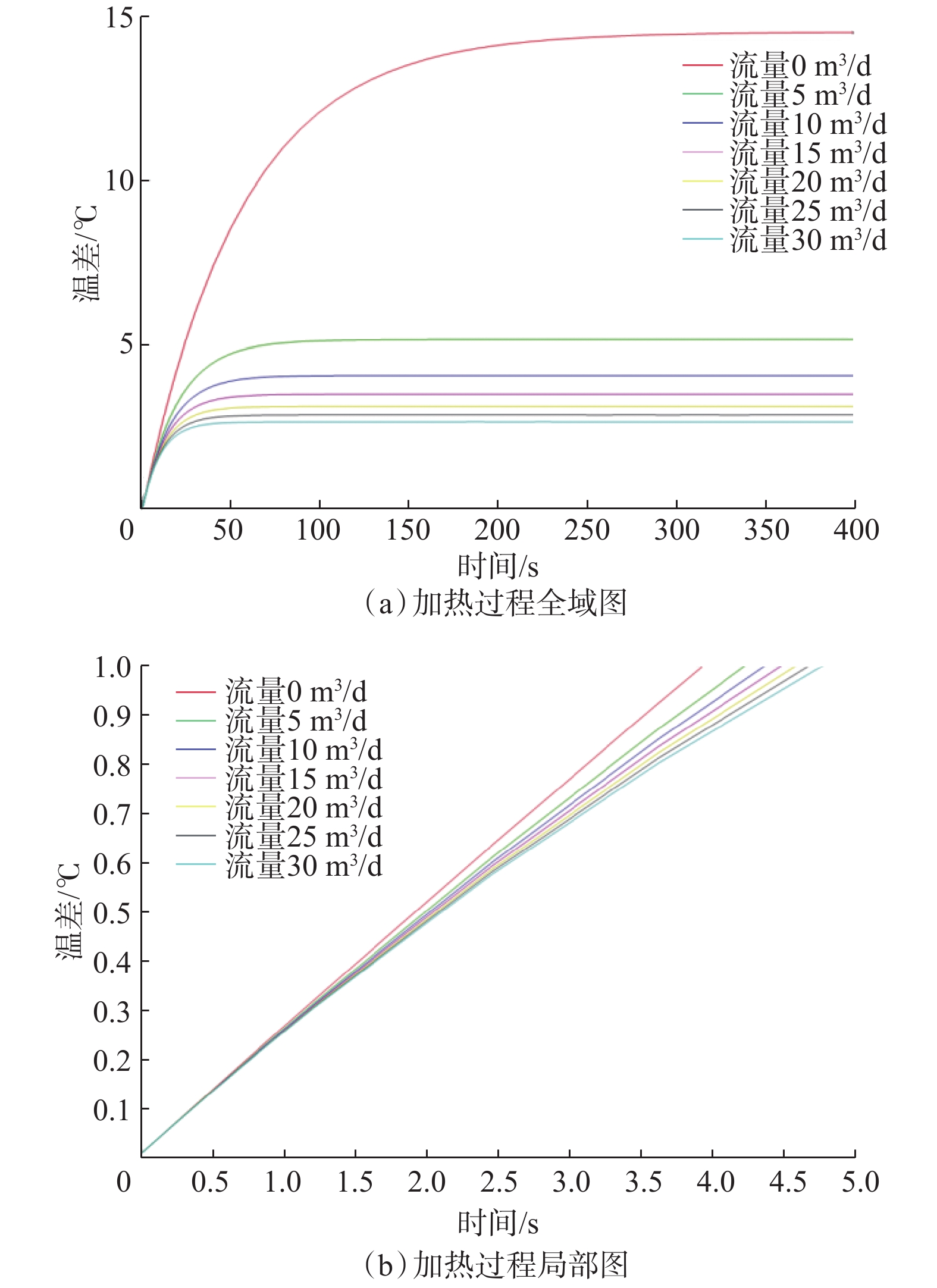 In light of the difficulties in measuring the flow rate of low-productivity producers in oil fields, the heat conduction effect caused by ambient fluid around the detector in the whole measurement cycle was adopted, a downhole flow rate measurement method based on time domain integral of heat transfer was put forward according to multiphase fluid thermodynamic theory. First, intermittent constant power heating was used to provide periodic energy to the detector. Then, an integral method was employed to calculate and analyze the variation of the internal temperature variation law of the detector with the external fluid flow during heating and cooling. The theoretical analysis and experimental study showed that the time domain integral area had an excellent correlation with the flow rate, and had high resolution under low flow rate condition. The problem that traditional turbine flowmeters lose their capability of detection as their turbines couldn’t be activated under low flow rate was solved with this method. The downhole flow rate measurement method based on the time domain integral of heat conduction has promoted the development of oil-water two-phase flow detection technology. It has provided a new technical means for flow rate measurement of low-productivity producers.